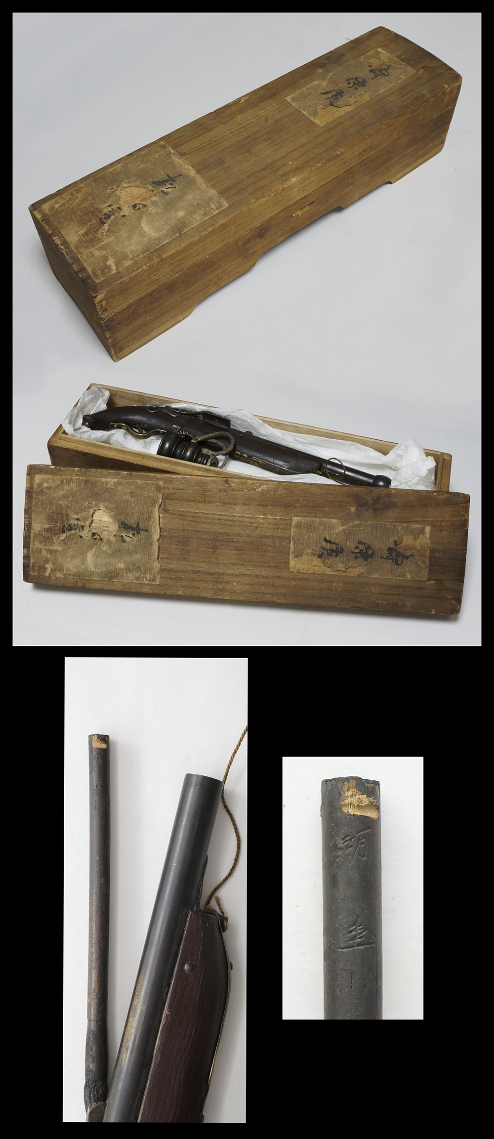 This yatate looks completely like a gun from outside. Inside the barrel there is a charcoal pen inside. There is two letters engraved on the pen but it is hard to identify what the letter is. It is very rare item that is hard to come across. On the surface of the box, it is written Suehiro Matsu◯◯.