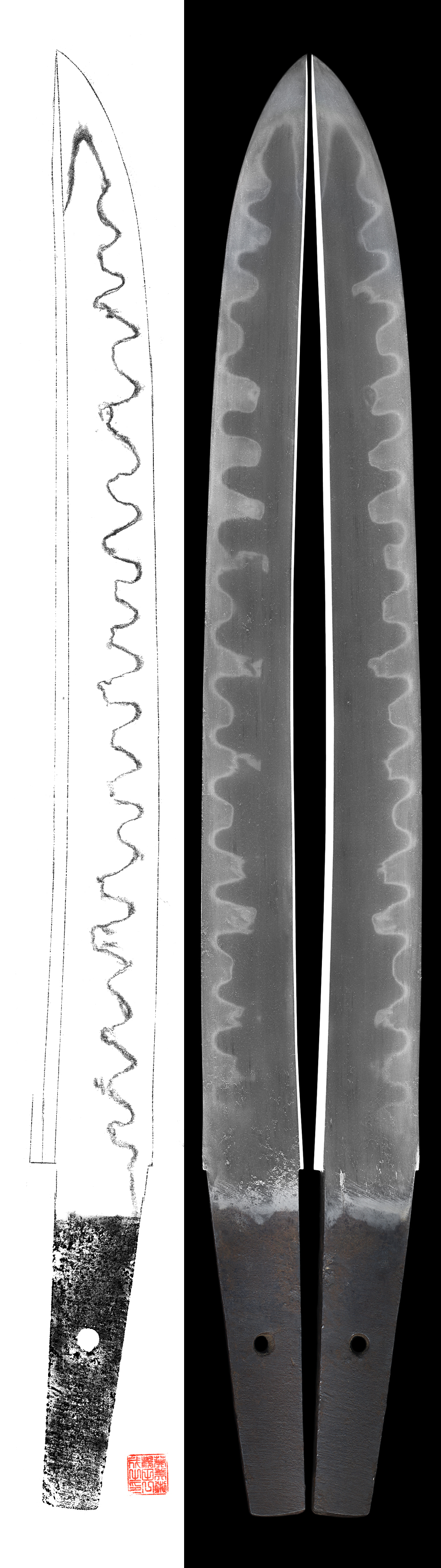 Hamon : Niedeki gunome midare up and down which looks like Kanefusa.