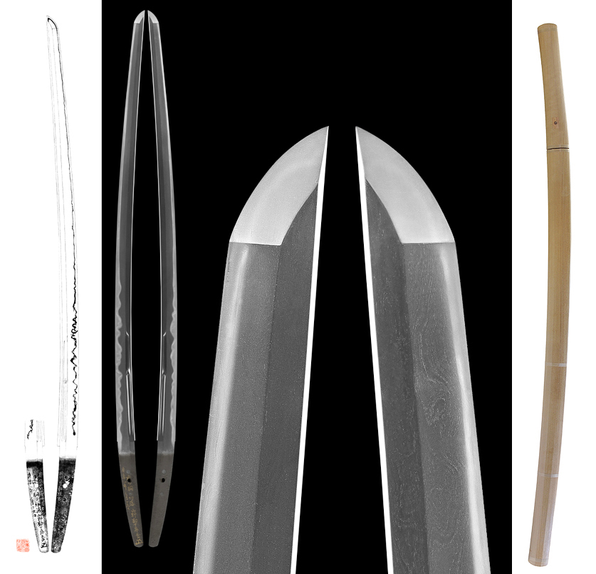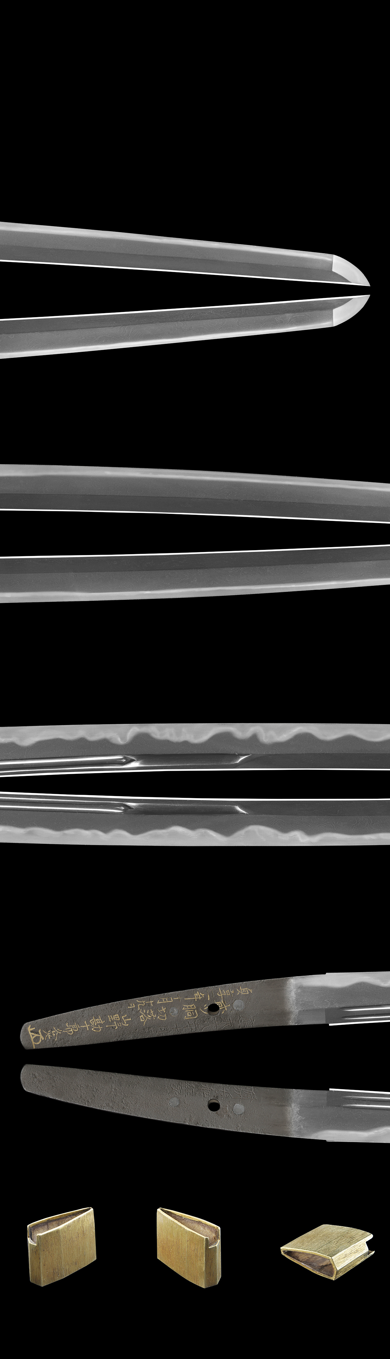 Hamon : Gunome and Koshi-biraki-Gunome,Gunome mix in nakasuguha to kissaki. In Ha, there are Sunagashi and Kinsuji with konie.