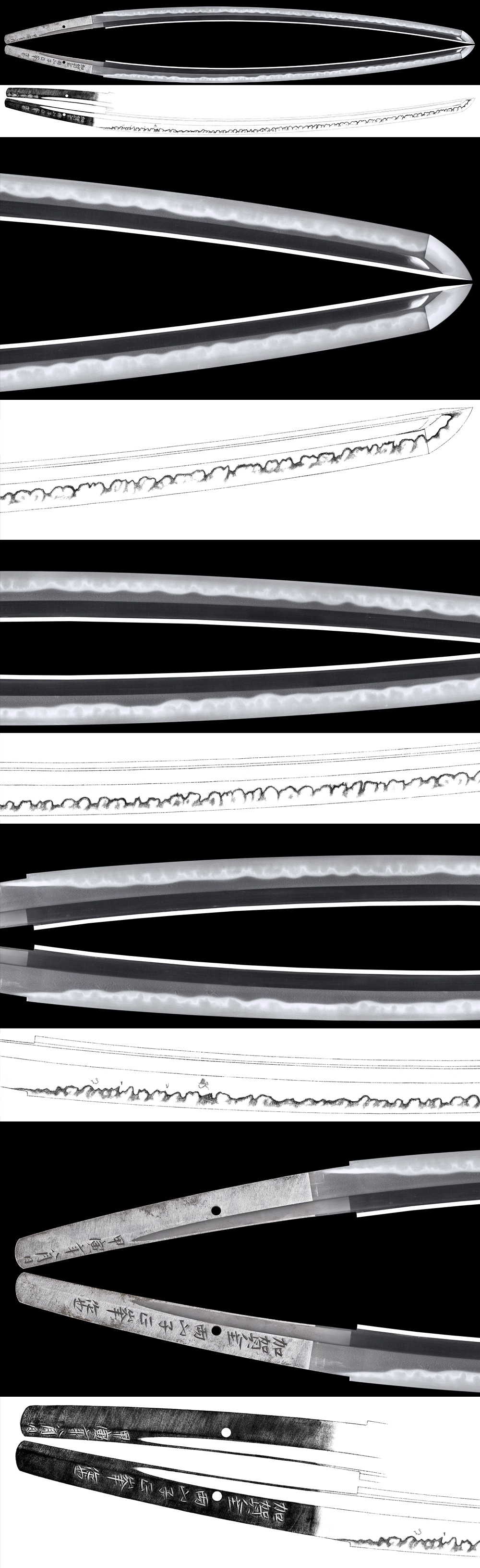Hamon : Nie deki gunome midare and Cyoji midare mixed with ashi, and yo work.
