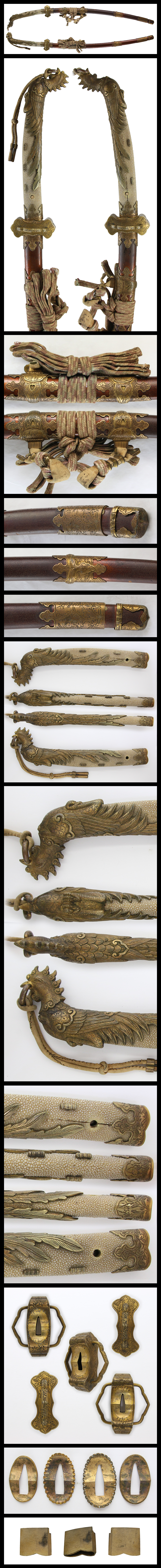 Fuchi : Arabesque pattern engraved on brass plate. Kashira : Phoenix engraved on brass plate.