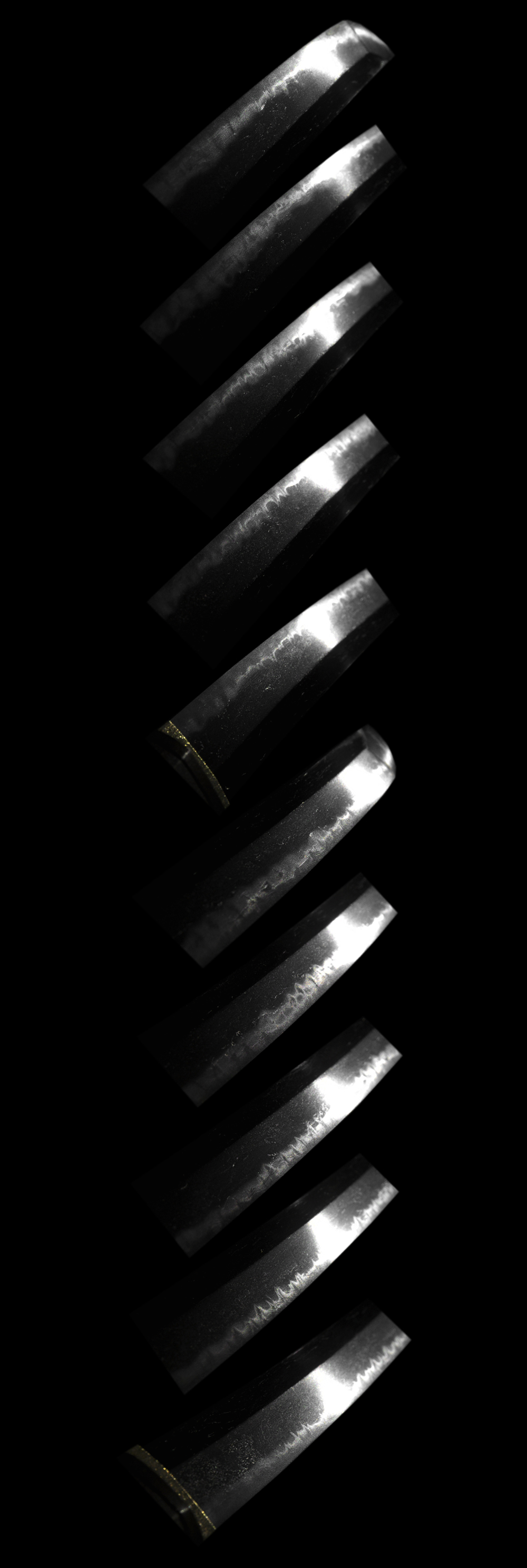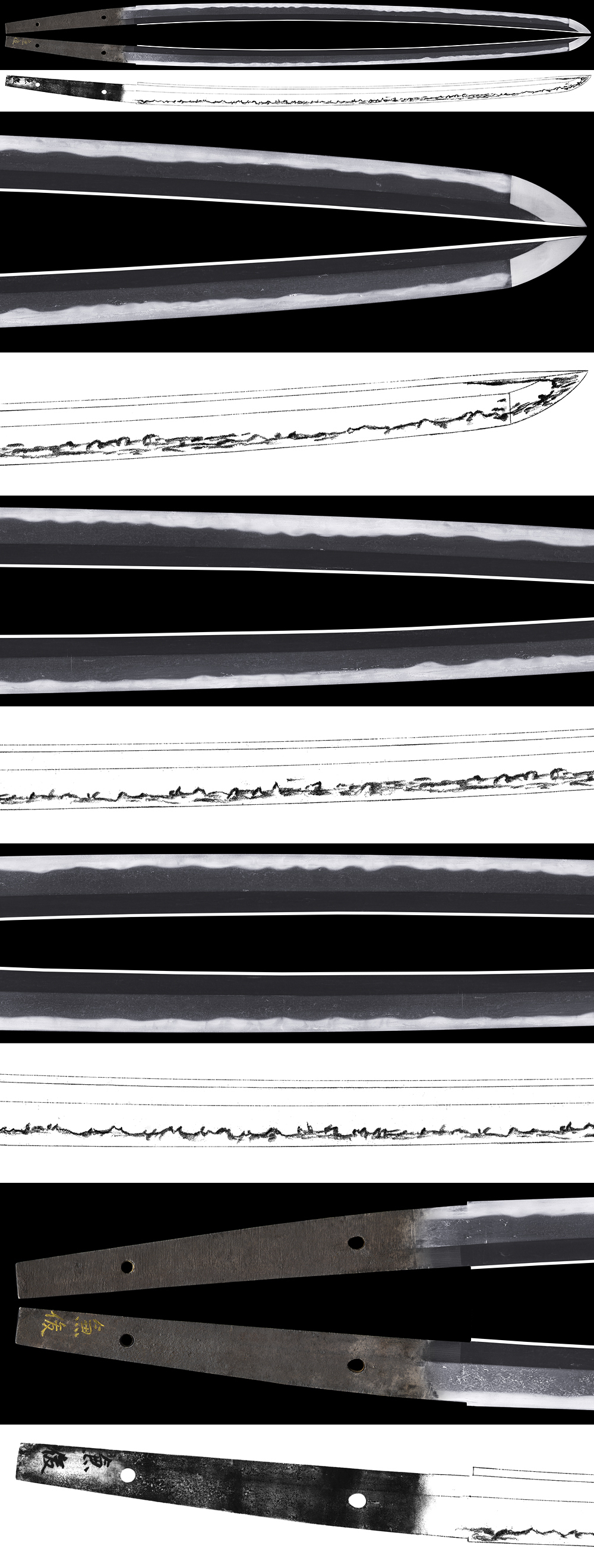 Hamon : Nie deki gunome midare with Nijyuba mixed. Togari Gunome midare