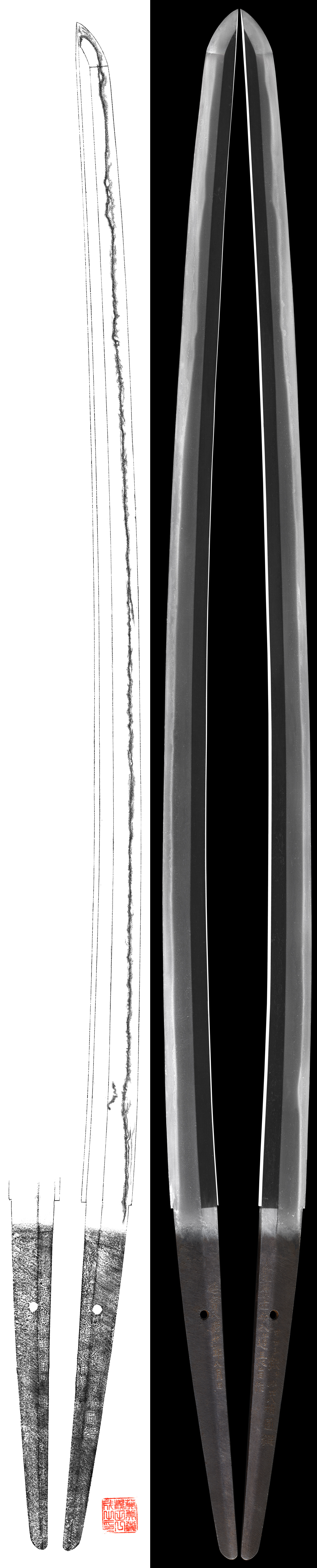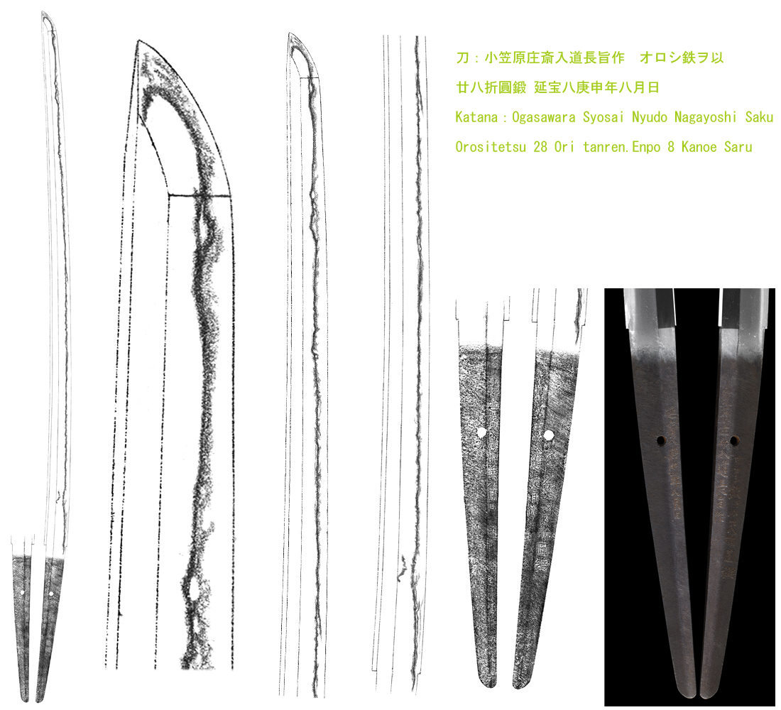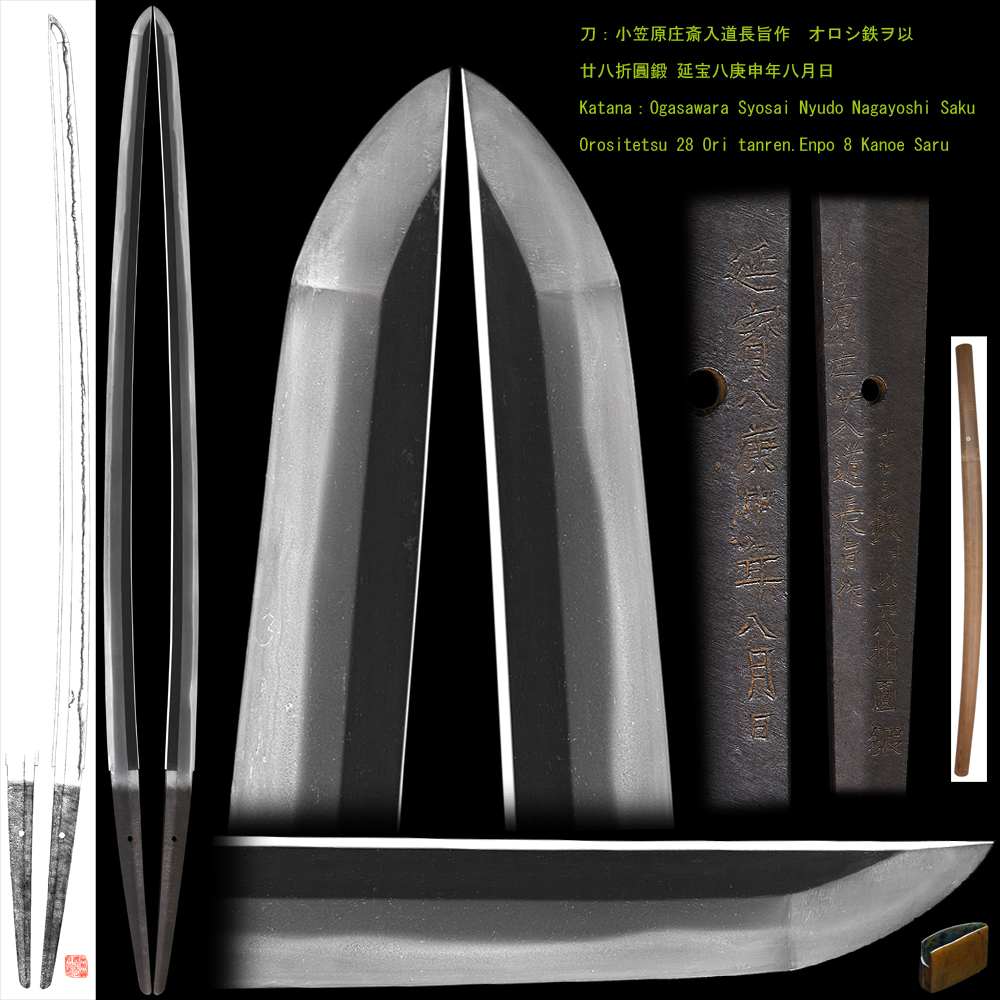 Tachi: Ogasawara Syosai Nyudo Nagayoshi Saku/Orositetsu 28 Ori tanren. Enpo 8 Kanoe Saru