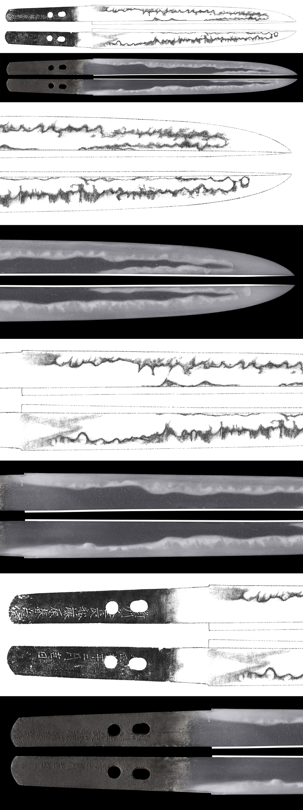 Choji midare Jigane is very well. Round shape Boshi turns back with long Yakisage is characteristic of Harumitsu.