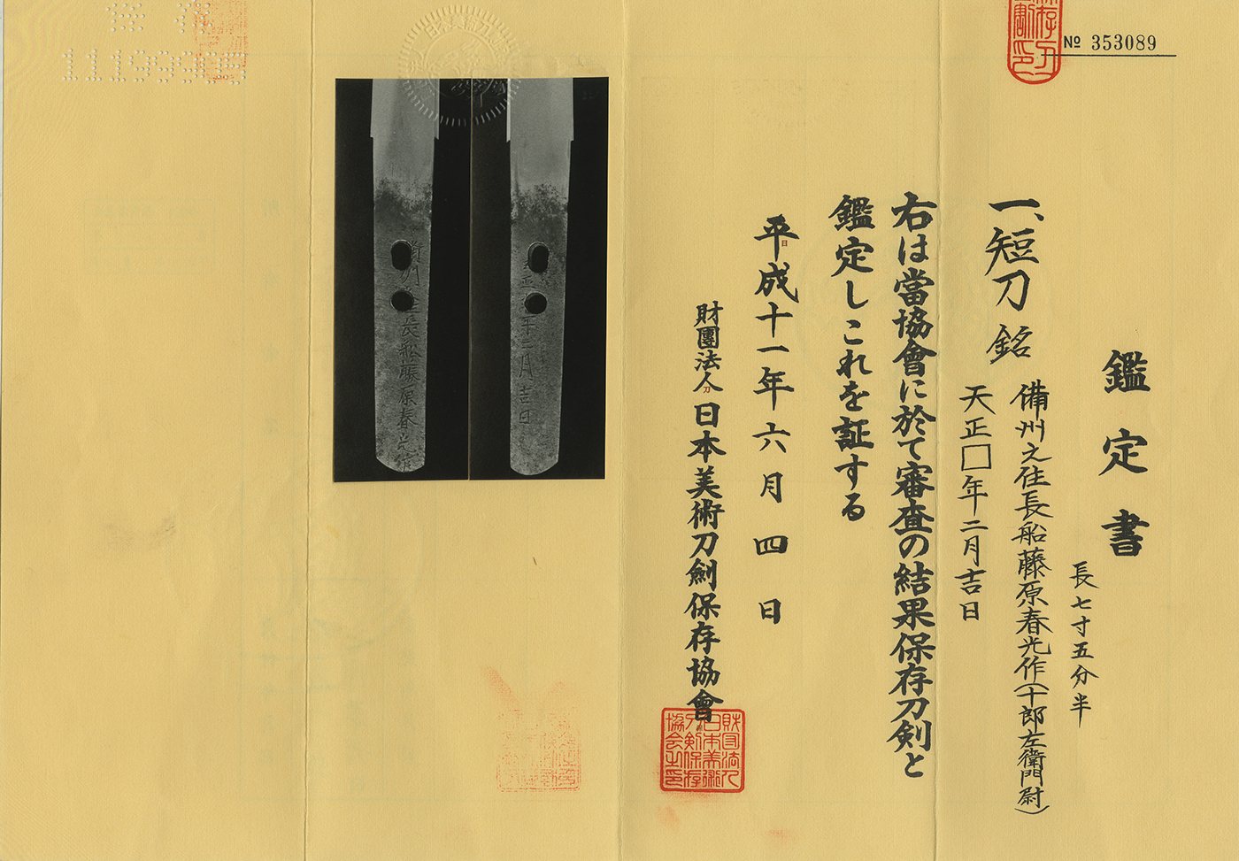 This Bishu Ju Osafune Fujiwara Harumitsu belongs to Jyojyo ranking.