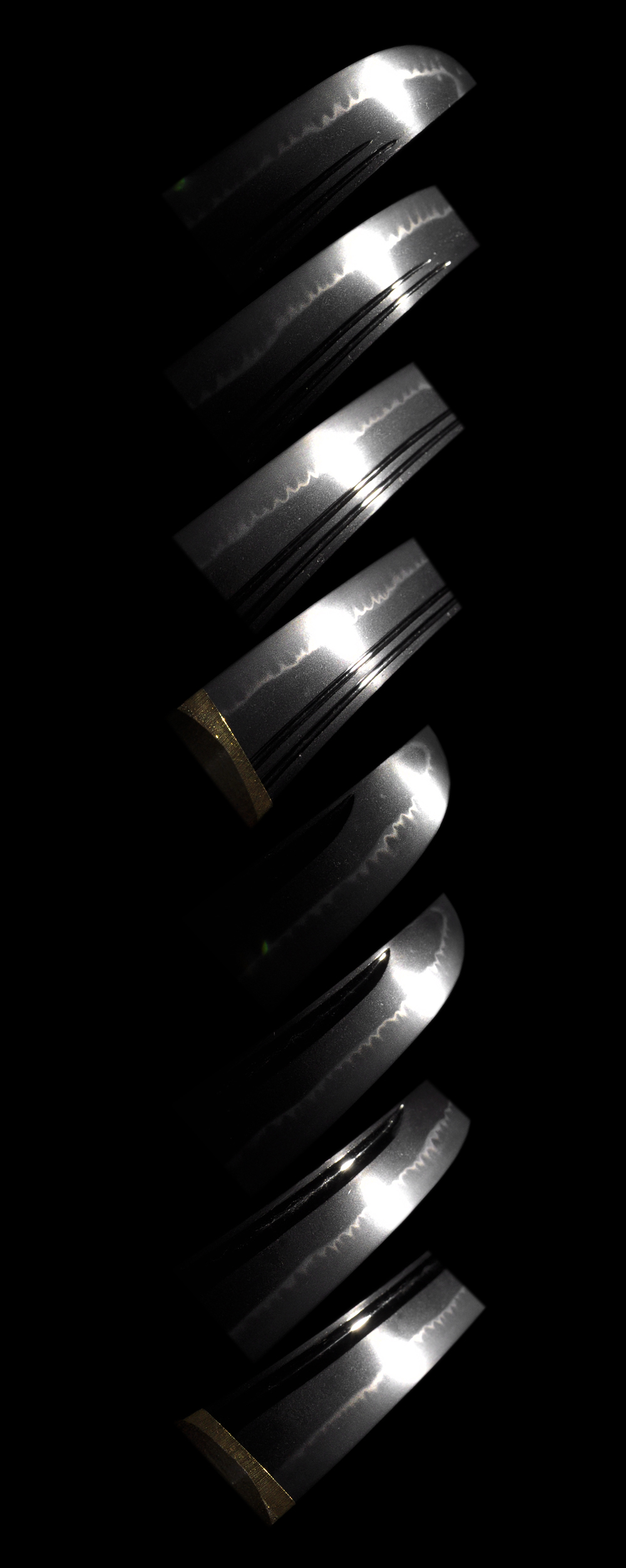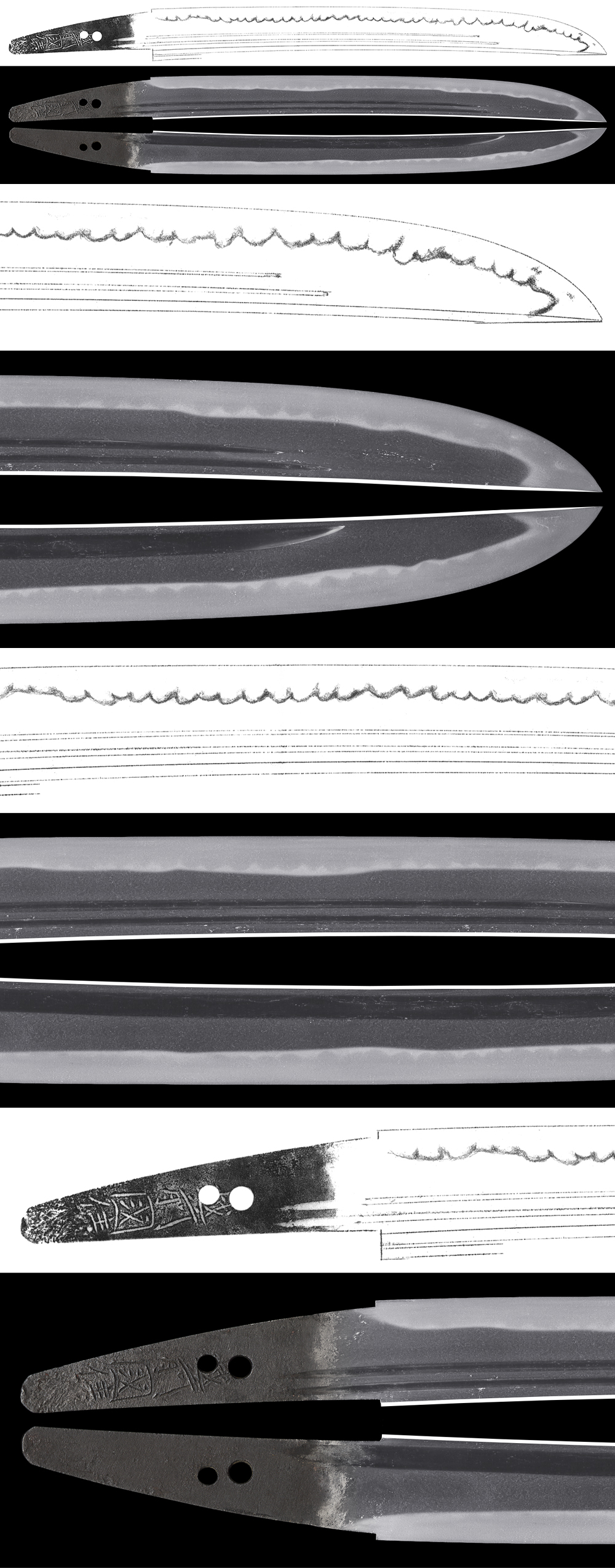 Hamon : Nie deki with wound gunome midare. Ashi is attached.