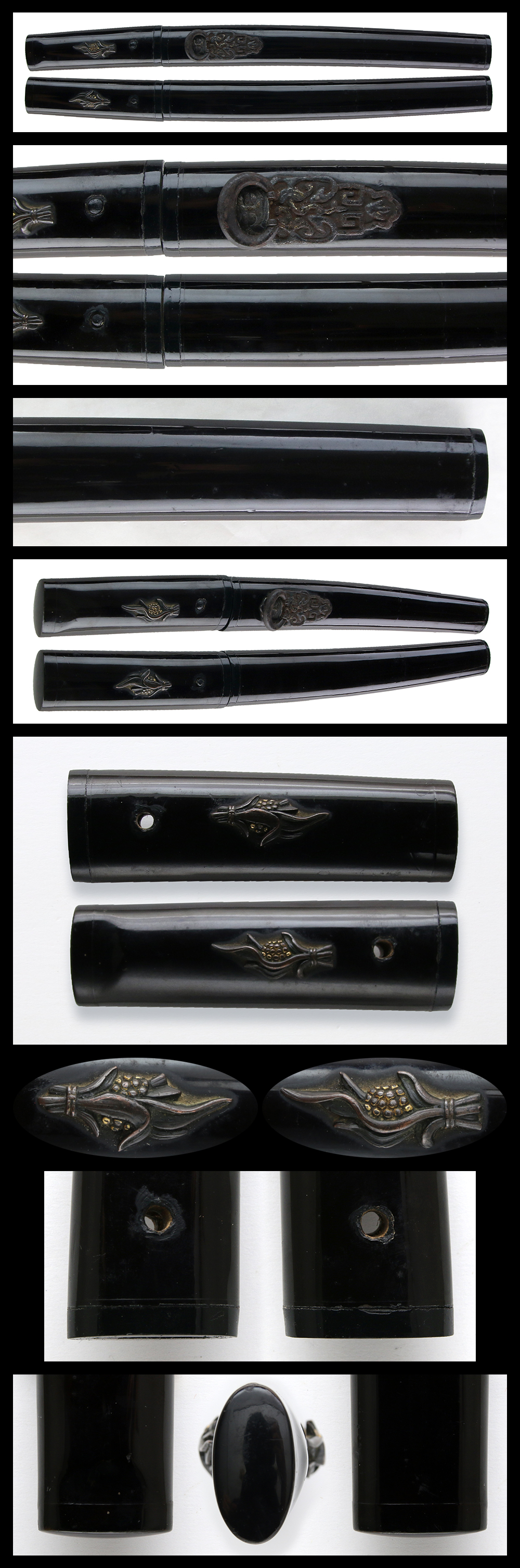 Saya : Black Roiro-Saya with some design like Shishi-dog carved on iron fitting.