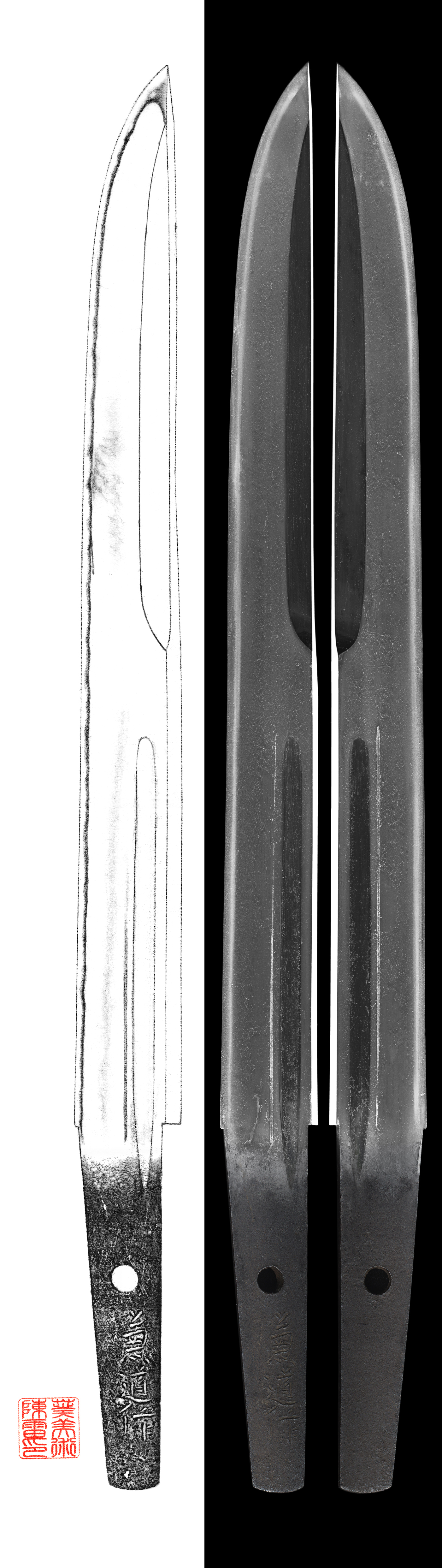 Shape : Kanmuri otoshi style which remind us Naginata style.