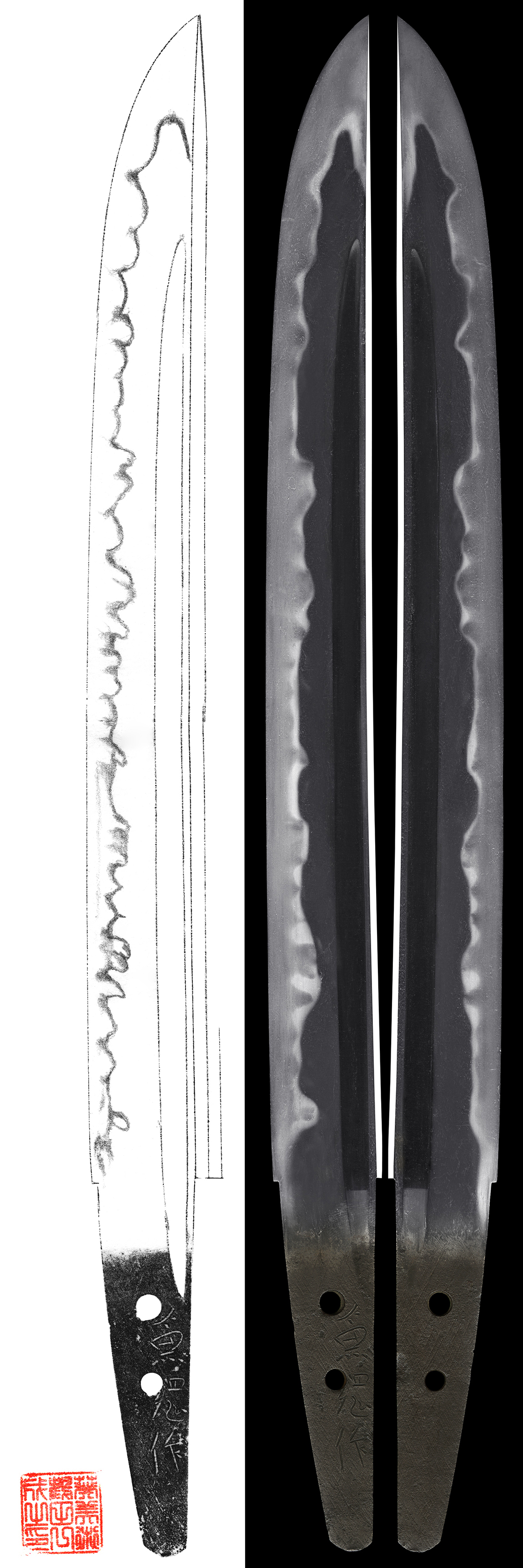 Shape : Thick and wide Tanto. There are Bo-Hi on both side.