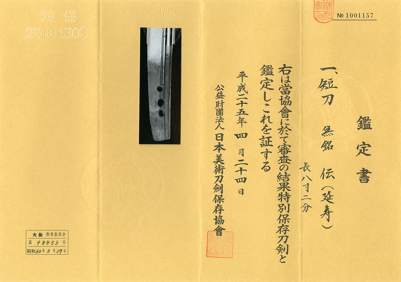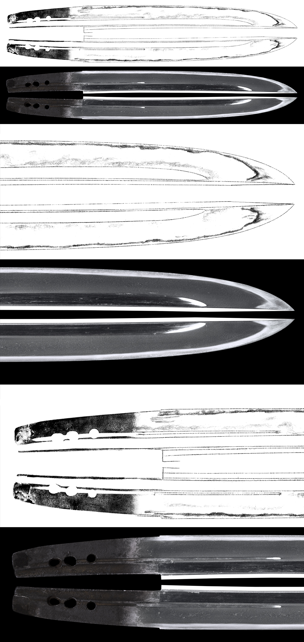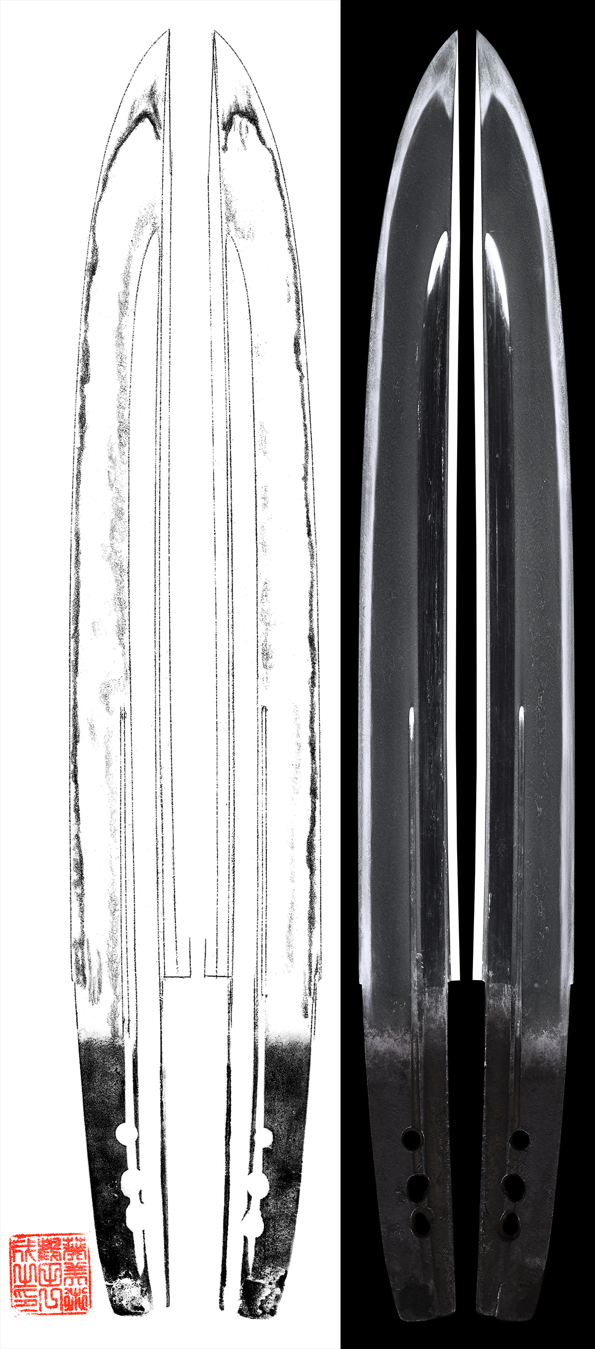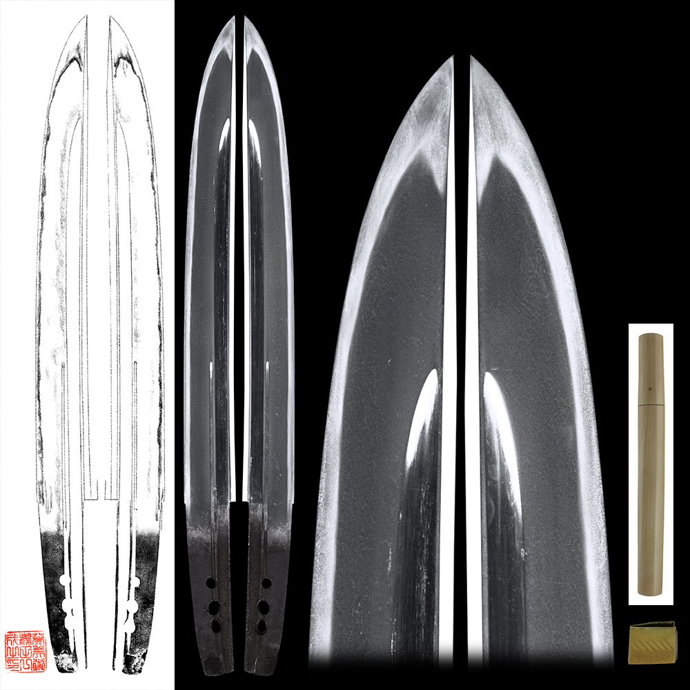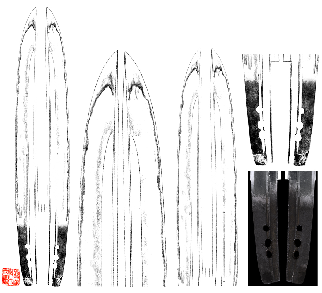 Shape : It is wide and thick tanto with Bo-hi and Soe-Hi engraved at both side of the blade.