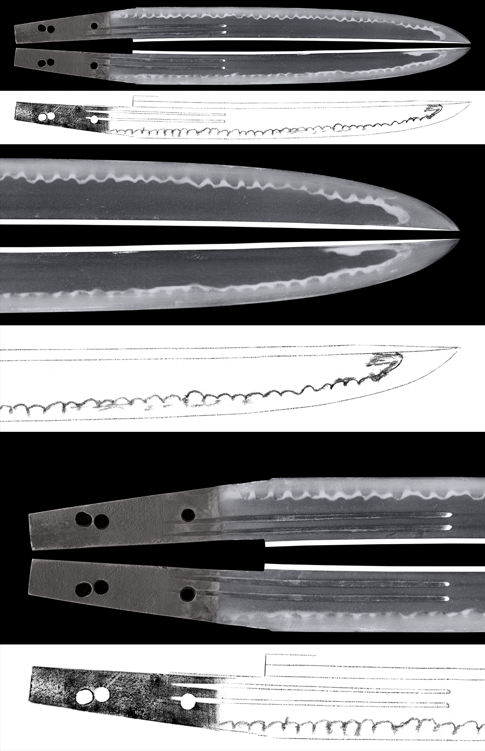 Hamon : Nie Deki, Ko-Gunome Midare. Boshi is round shape.