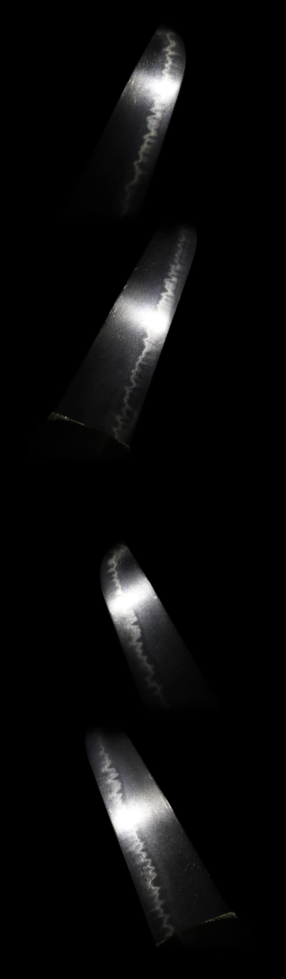 Hamon : Konie-deki, Choji-midare strongly appear on surface of the blade. Ahi, Yo, Kinsuji works well.