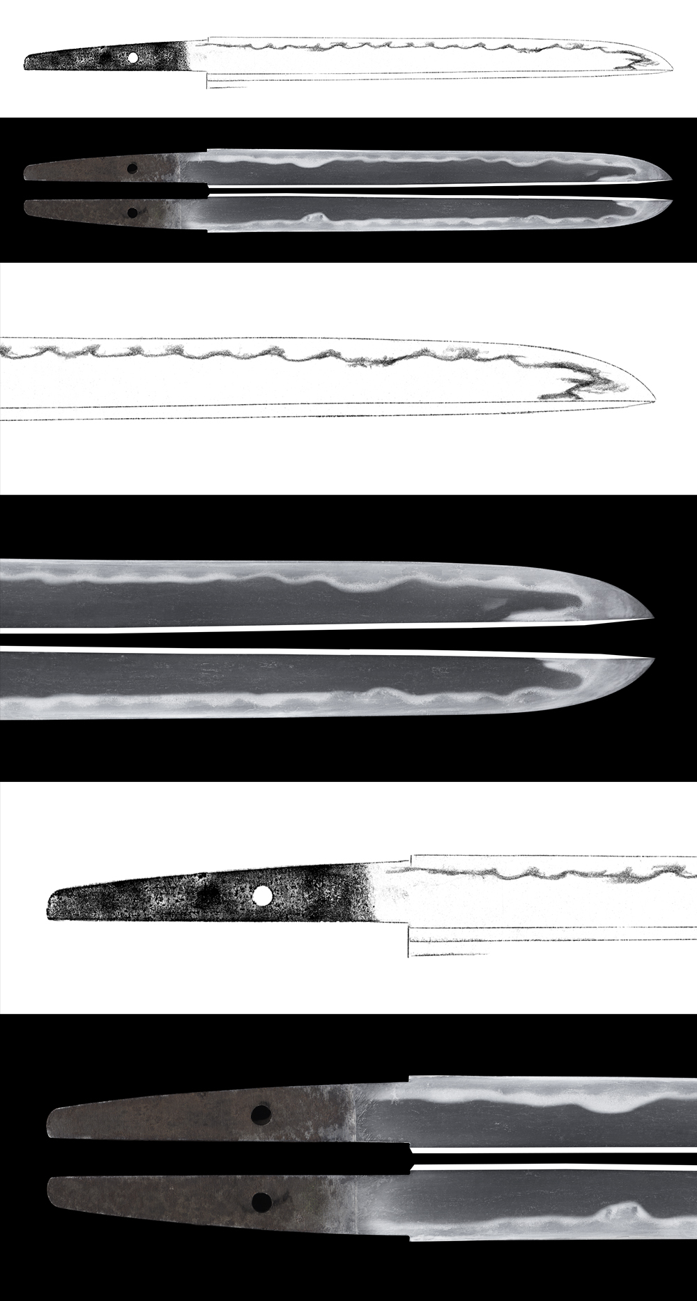 Hamon : Constructed in nie structure, nioiguchi is rather deep. Ashi is attached in the ha. Boushi is round end.