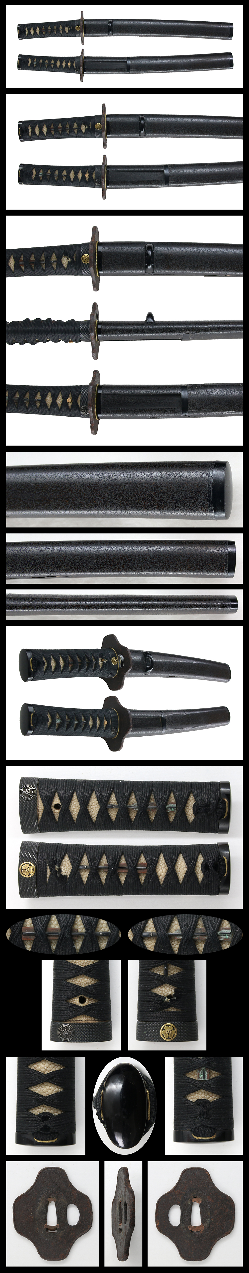 Fuchi : Shakudo nanakoji style with family crest drawn in gold.