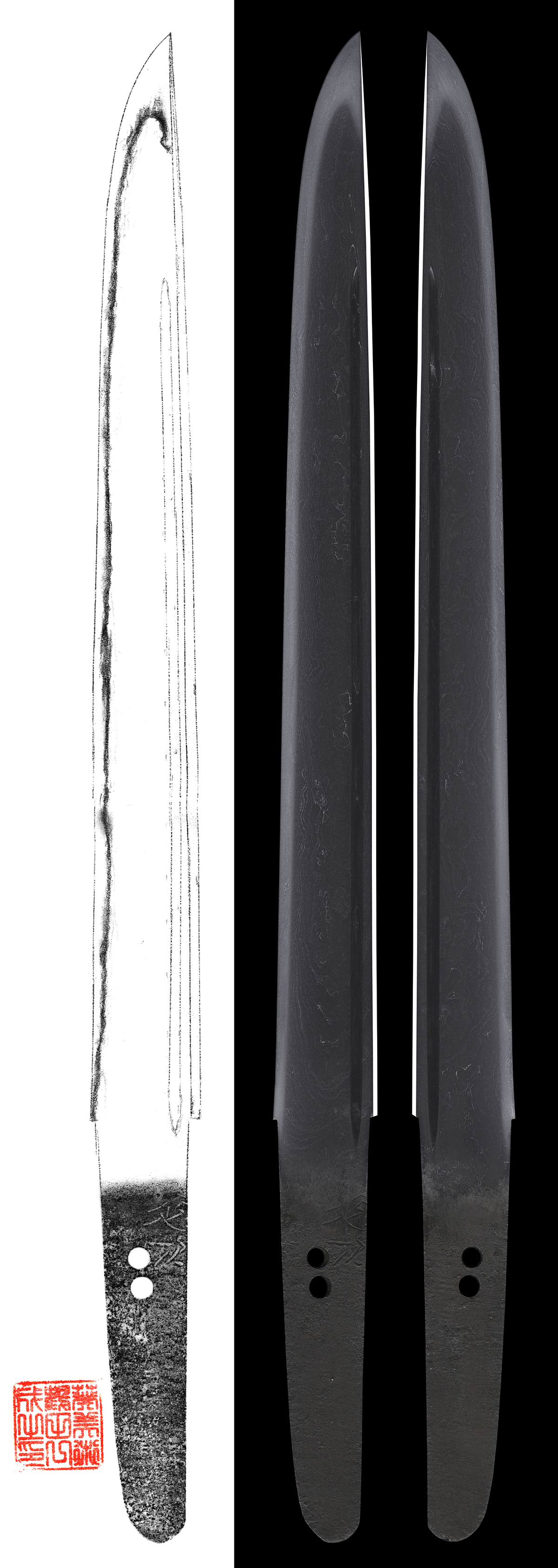 Shape : Regular size, Mitsumune Tanto. There are Bo-Hi on both side.