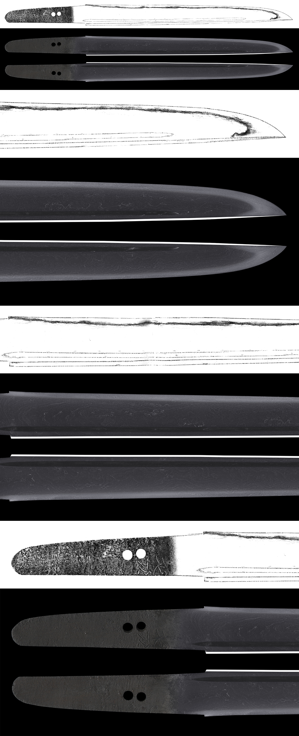 Jitetsu : Itame Hada and Oohada mix. In Ha, there are Sunagashi and Kinsuji. There is Bo-Utsuri around Habaki part.