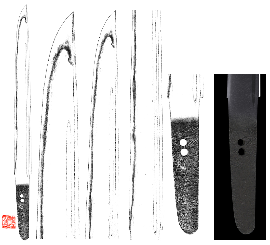Nobutsugu is son of Kanenobu. They are called Yamada-Seki school. This blade is nice Hadamono.
