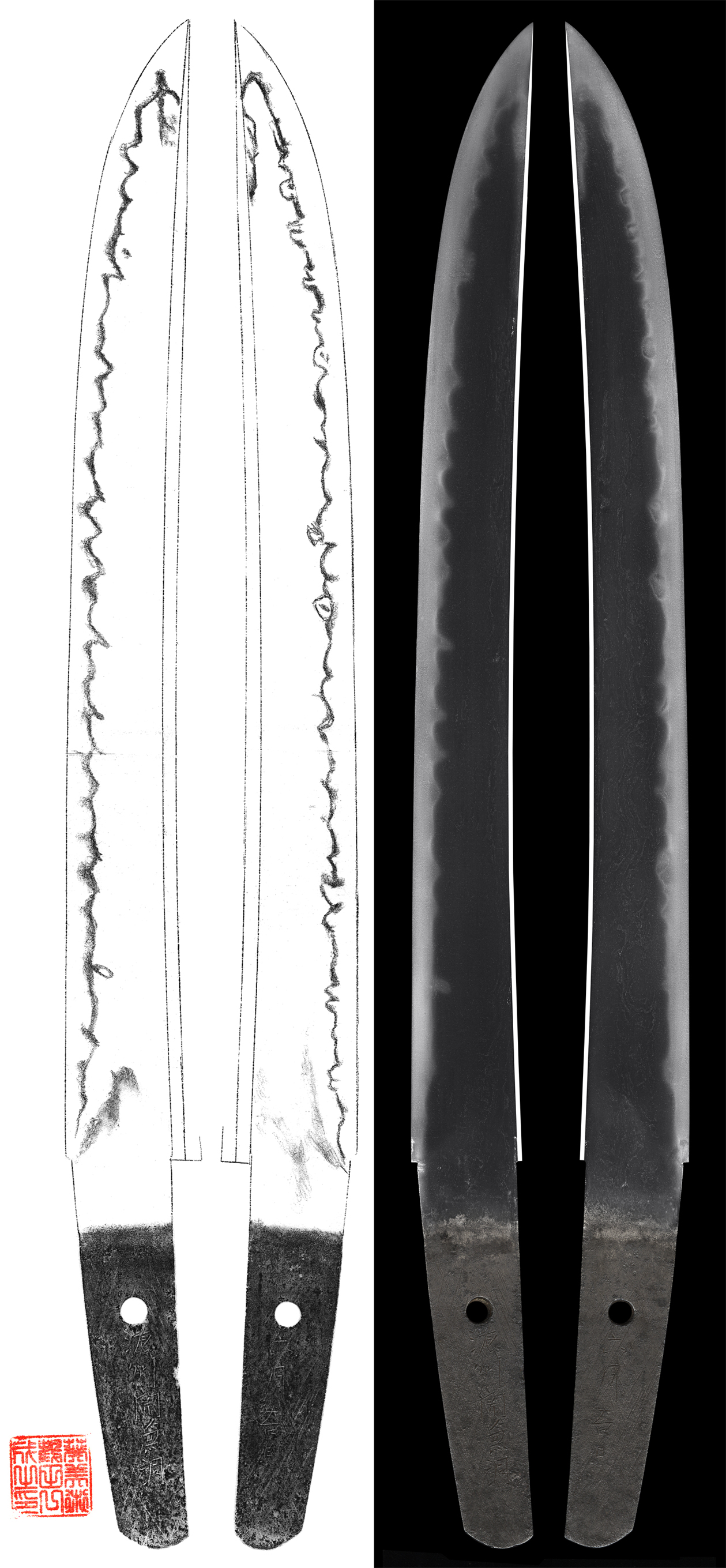 Hamon : Niedeki gunome midare and togari gunome midare mixed.