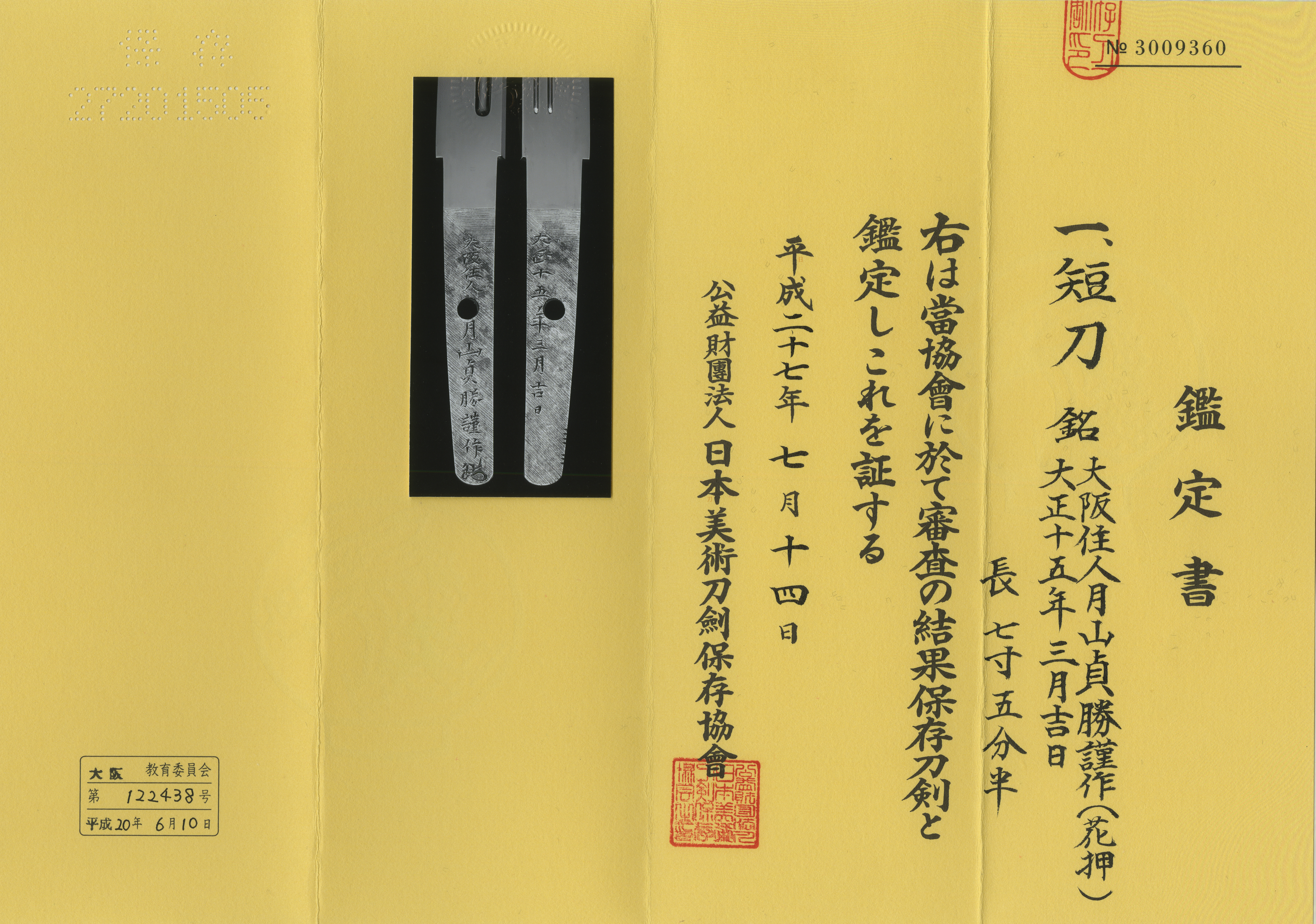 Signature : Osaka Junin Gassan Sadakatsu Kinsaku (Kao)