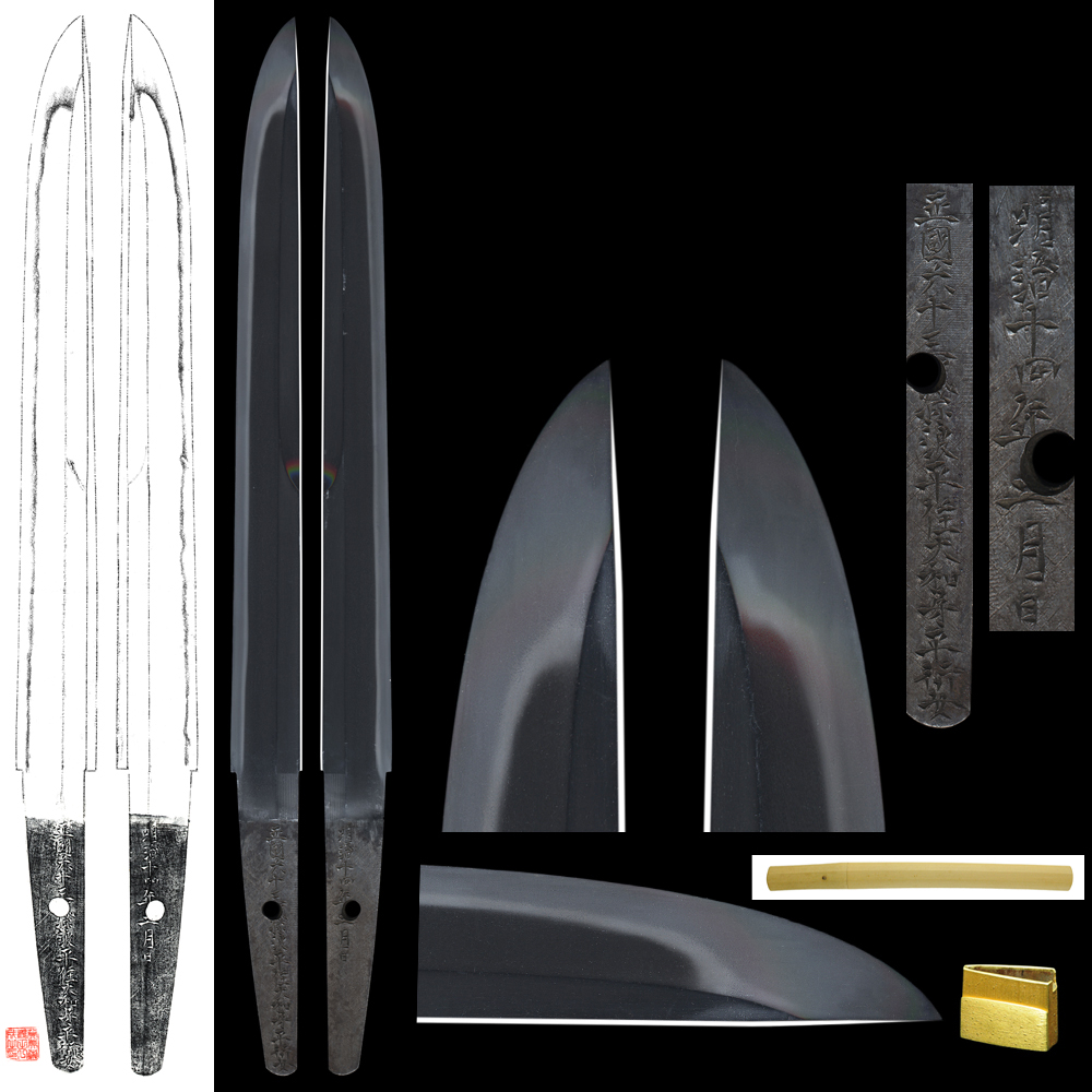 Shape : The blade is rather wide and thick Kanmuri otoshi style.