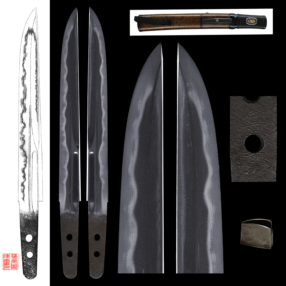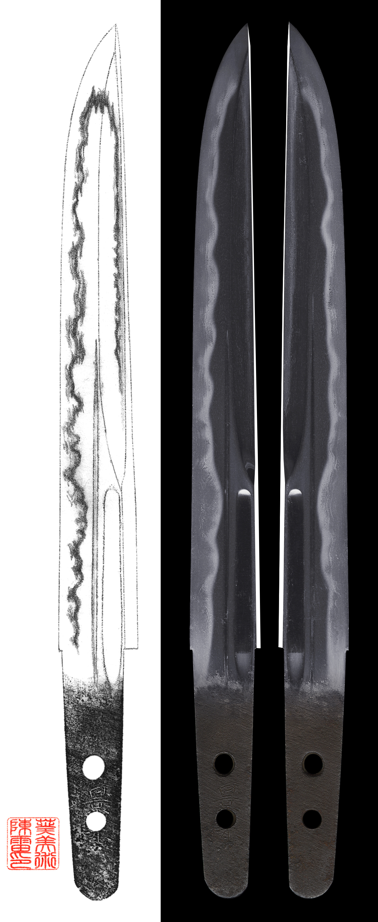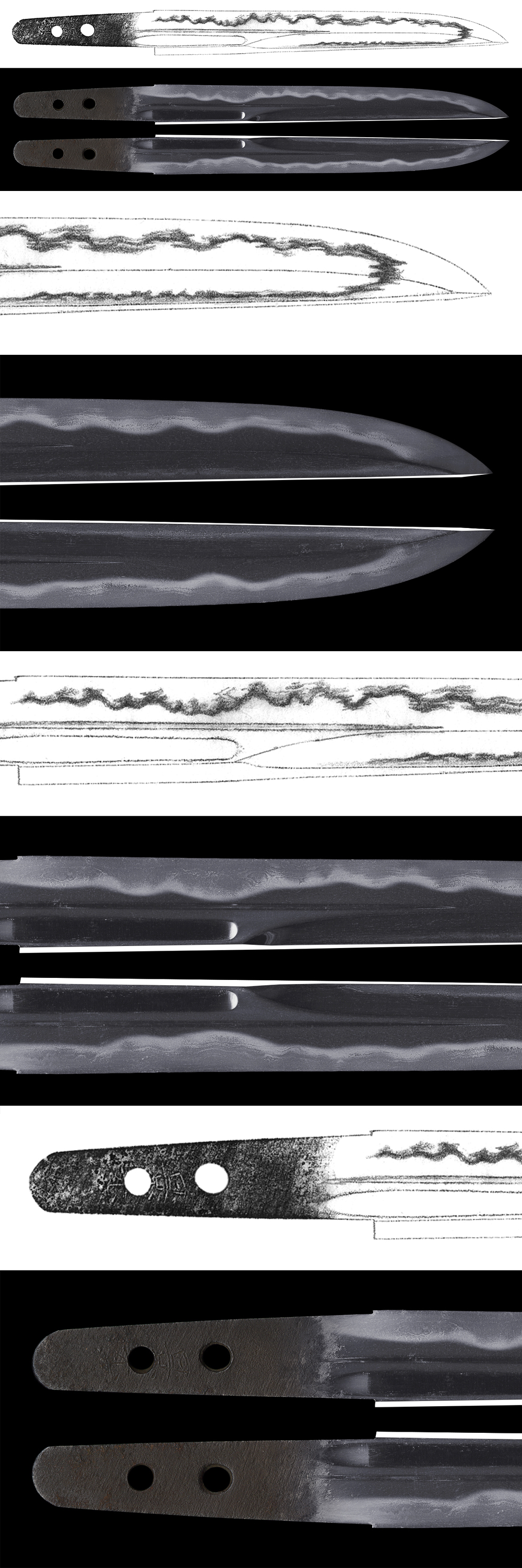 Hamon : Gunome mixture with some sunagashi and fine streaks of kinsuji mixed. Boshi is hakikake style. It has long burn down.