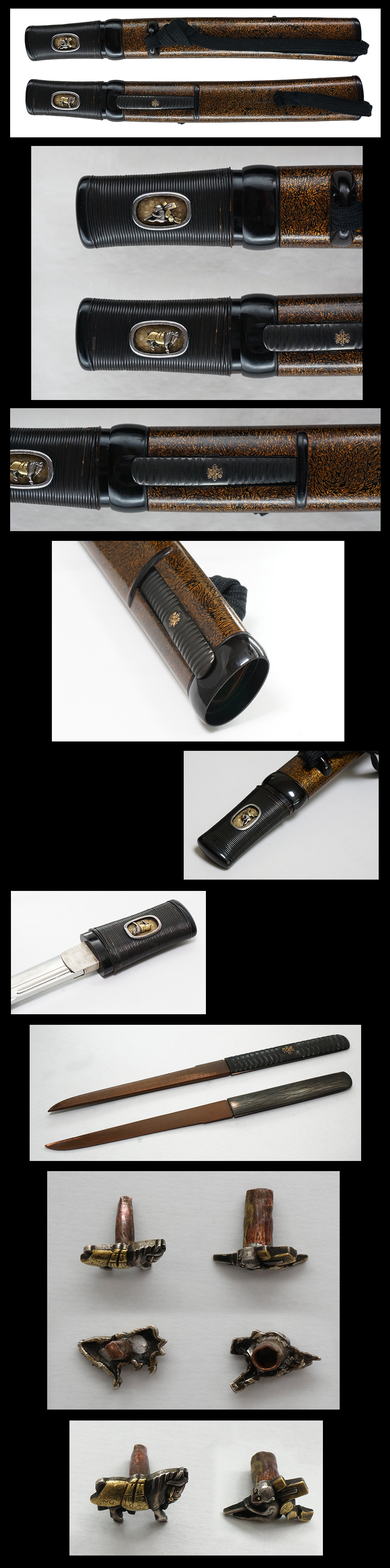 Kozuka : Shakudo with Kizami, Kiri mon is engraved with gold color.