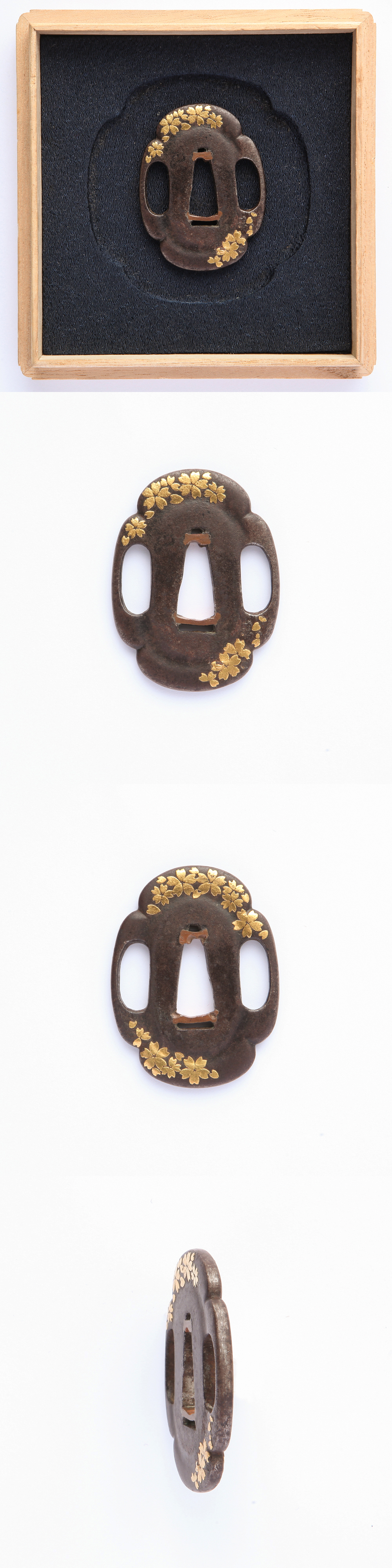 Special feature: On the iron Tsuba, Japanese cherry blossom with gold color.