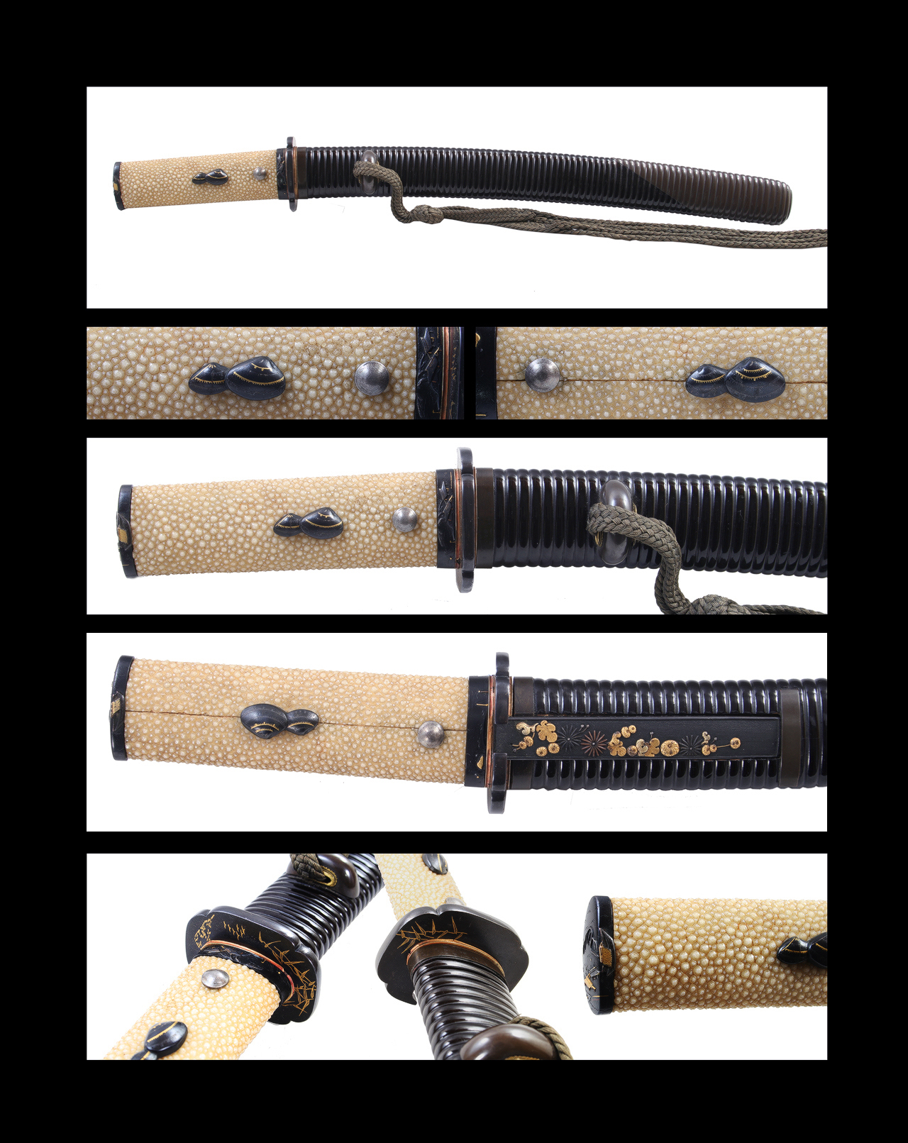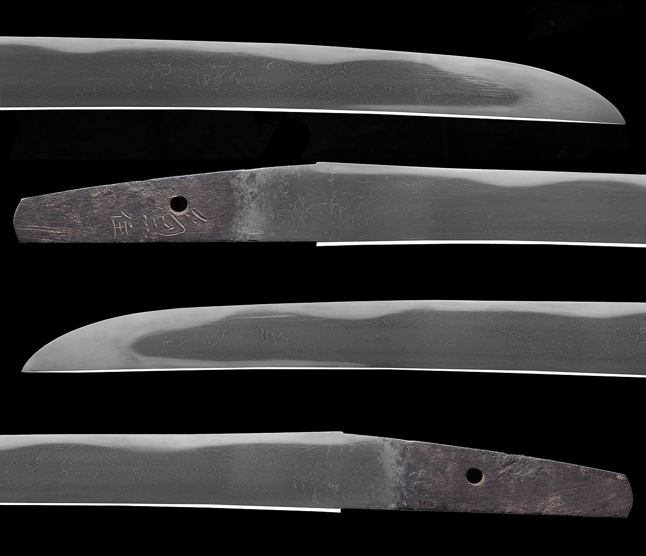 Hamon : Niedeki gentle wavy temper line Kissaki round shape and turns back Yakisage hamon.