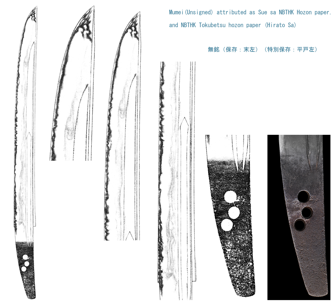 Signature: Mumei(Unsigned) attributed as Sue sa NBTHK Hozon paper. and NBTHK Tokubetsu hozon paper (Hirato Sa)