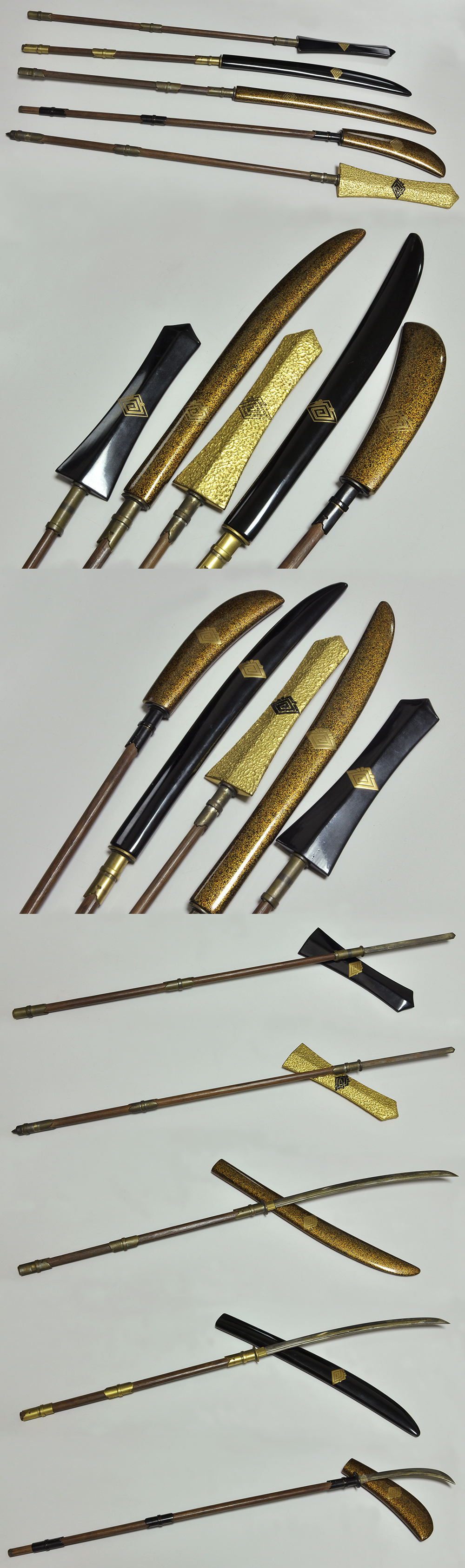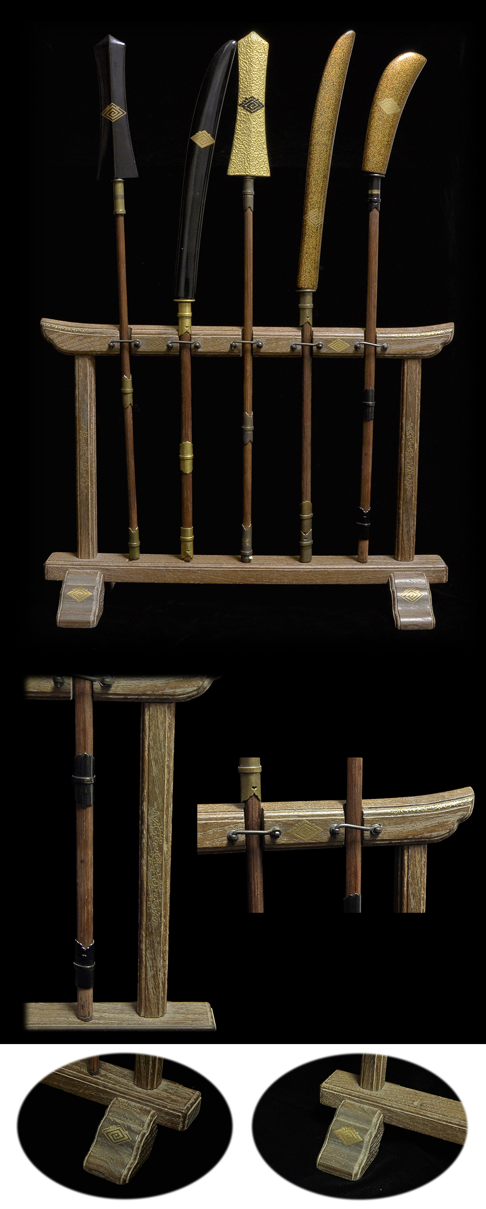 The Nagamaki, Yari, Naginata and stand was made by Maruhei Oki in Kyoto.