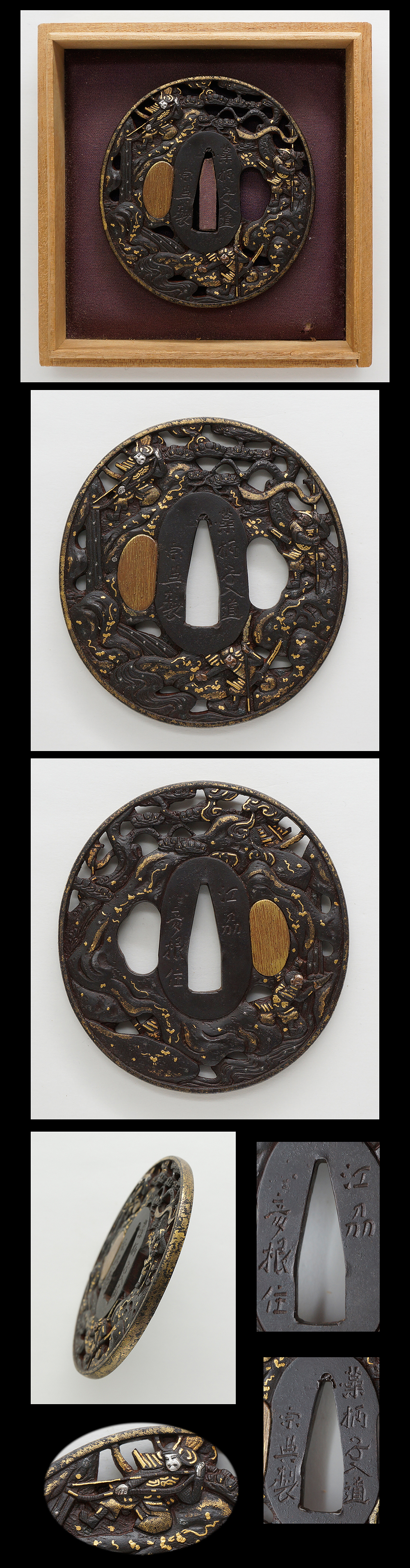 Special feature: Iron Tsuba, Samurai are engraved with open work and gold color. Fine gold color is inlaid.