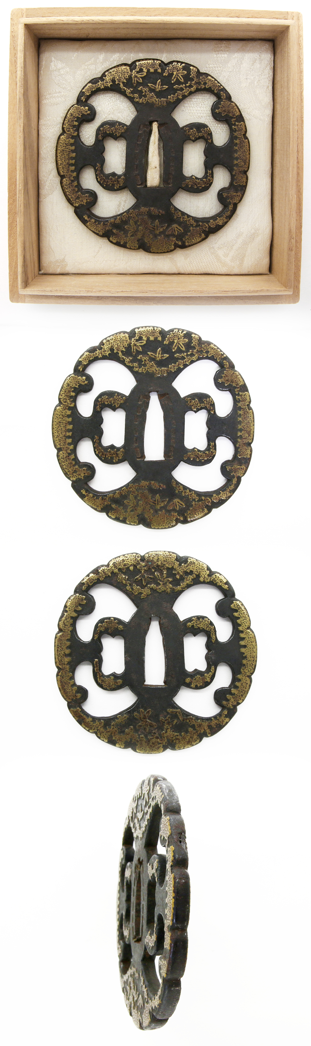 Special feature: Iron Tsuba, leaf design with brass inlay.