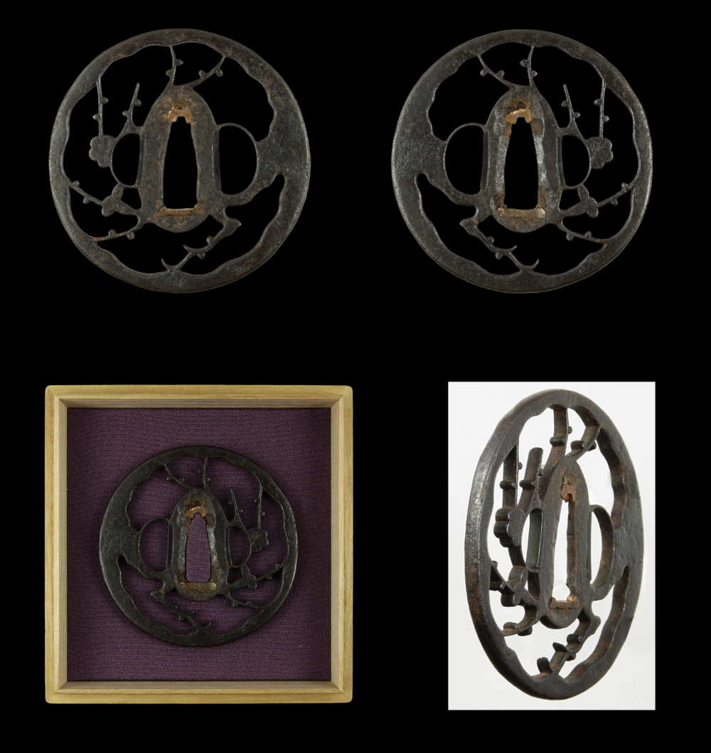 Special feature: On the round shaped iron Tsuba, the plum trees is