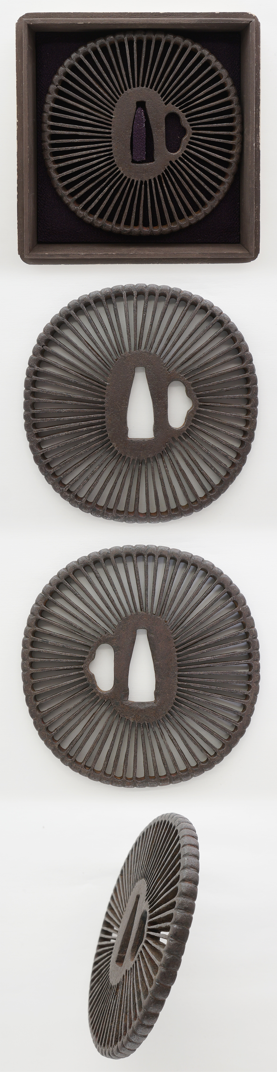 Ordering number : F14397 Tsuba: Mei (signature) : Mumei (unsigned) (Yoshioka) Length : 7.05 cm x 6.62 cm ( 2.78 inches x 2.60 inches) Thickness of rim : 0.42 cm ( 0.17 inches) Jidai(era) : Edo peirod Special feature : ...