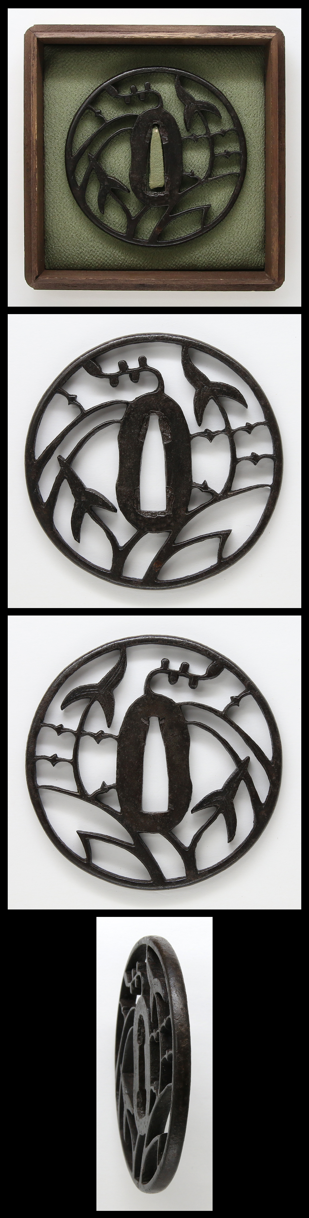 Special feature : On the round shaped iron Tsuba, some plant are engraved open work.