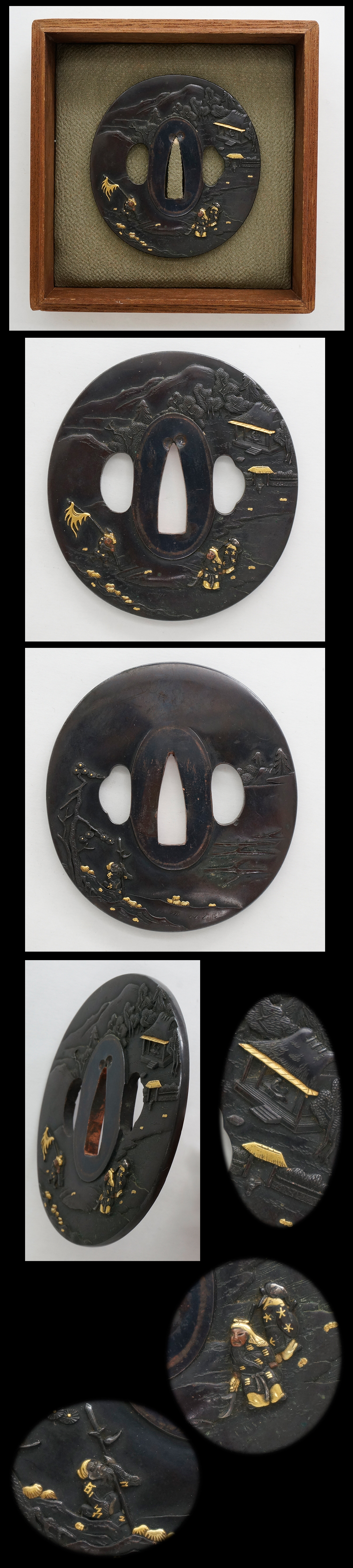 Ordering number : F13136 Tsuba: Mei (signature) : Choshu Hagi ju Tomohisa saku Length : 7.39 cm x 6.96 cm ( 2.90 inches x 2.74 inches) Thickness of rim : 0.44 cm ( 0.17 inches) Jidai(era) : Late Edo period. ...