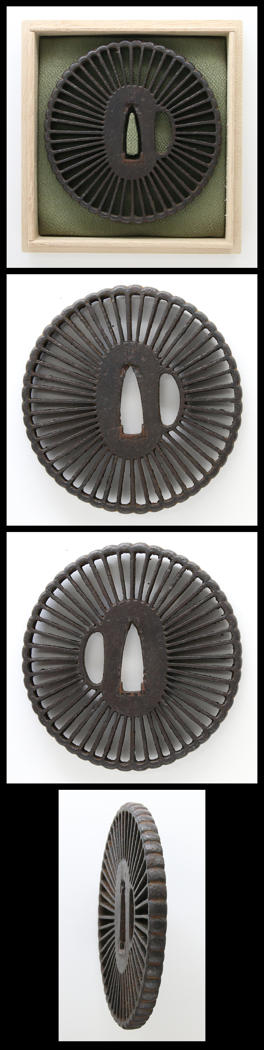 This school started Nanbokucyo to Edo period. I think This Tsuba was made early Edo period. The stub is thick and large size healthy Tsuba without fault.If you taking care of the Tsuba, it will be good color.