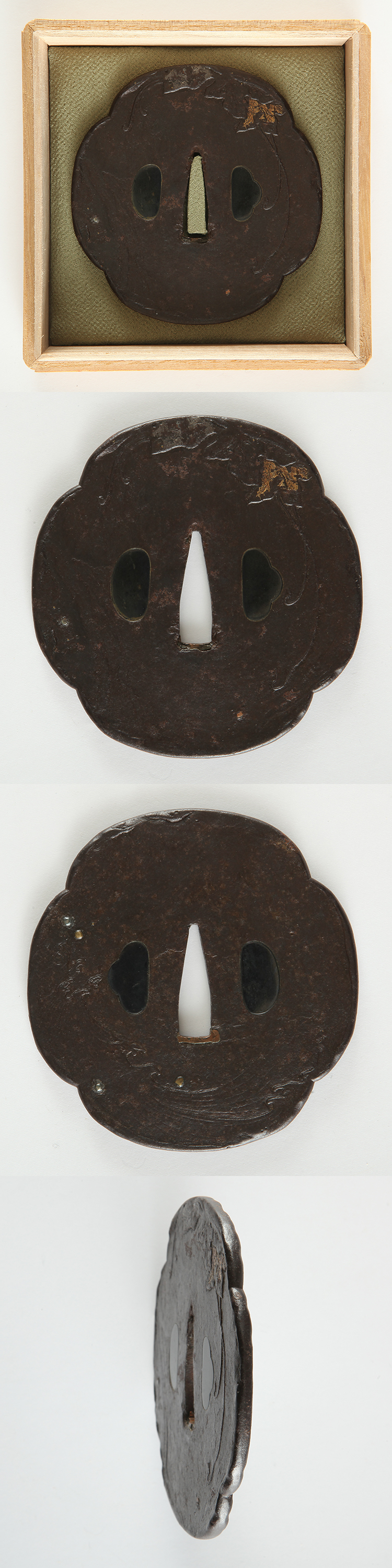 Special feature:Tatemaru shape shakudo tsuba with Chinese men, Karako and Shibagaki design engraved.