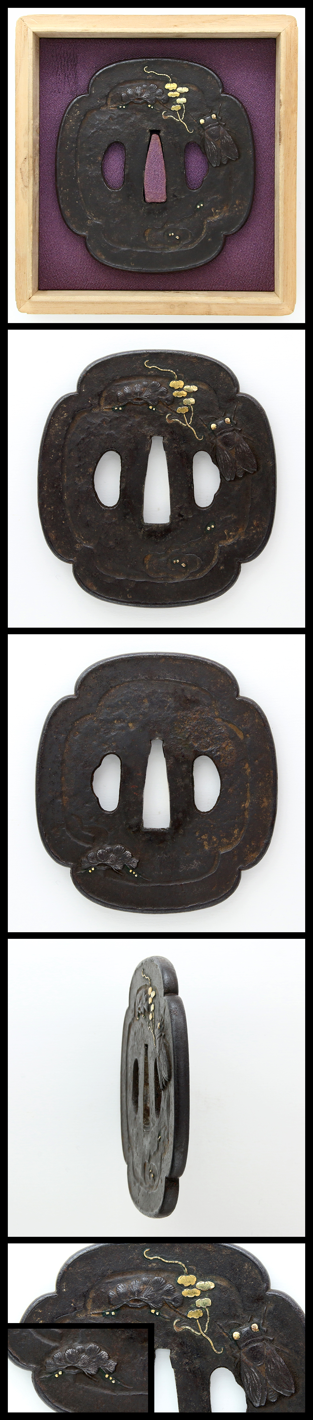 Special feature:Mokko shape iron tsuba with cicada and pine design engraved and inlaid with gold. It is a work with the atmosphere that the voice of a chirping cicada sounds like.