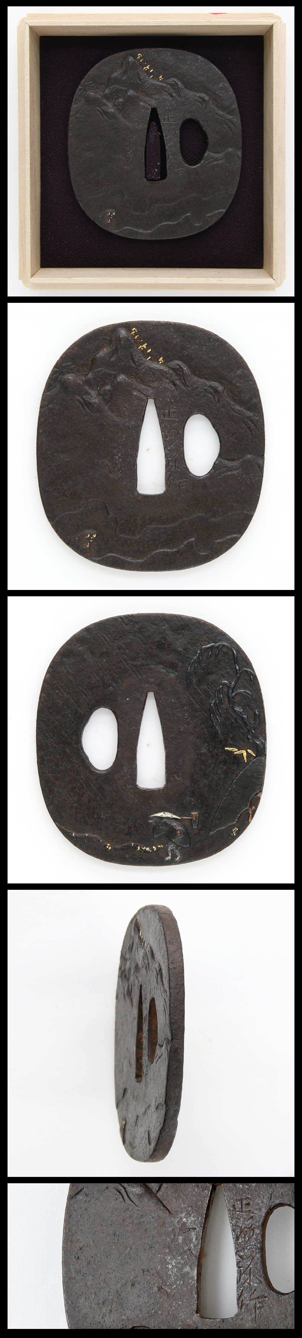 Ordering number : F12105 Tsuba : (NBTHK Hozon Paper) Mei (signature) : Mumei (Unsigned) Koudai Mino Length : 7.54 cm x 6.88 cm (2.96 inches x 2.7 inches) Thickness of rim: 0.34 cm (0.13 inches) Jidai(era) : Late Edo period. ...