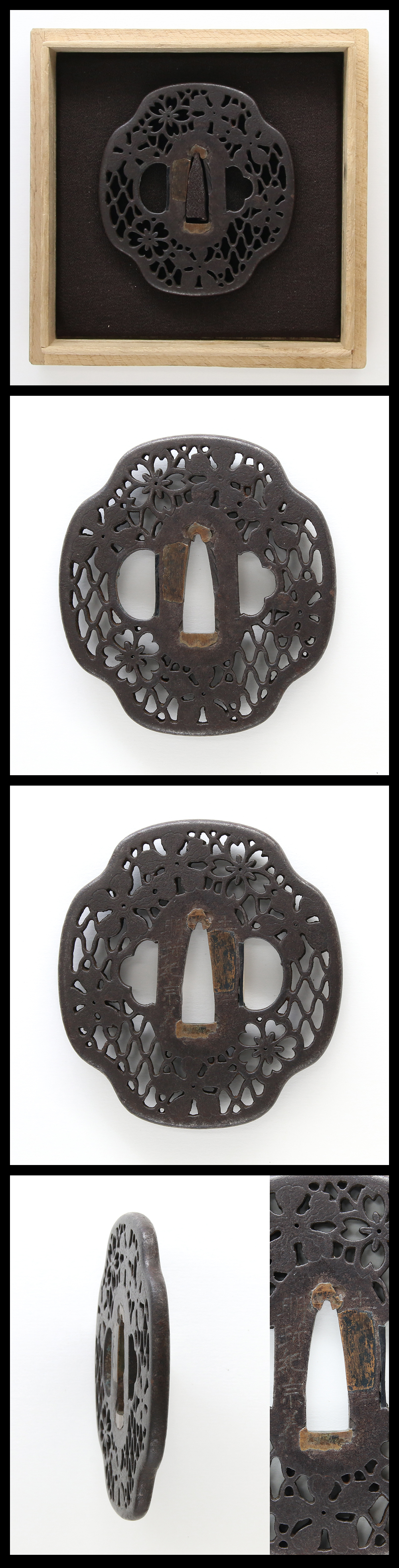 Special feature:He was making Tsuba at Edo and moved to Tsuchiura at the end of Edo period. This Tsuba is engraved delicate hlower design open work.