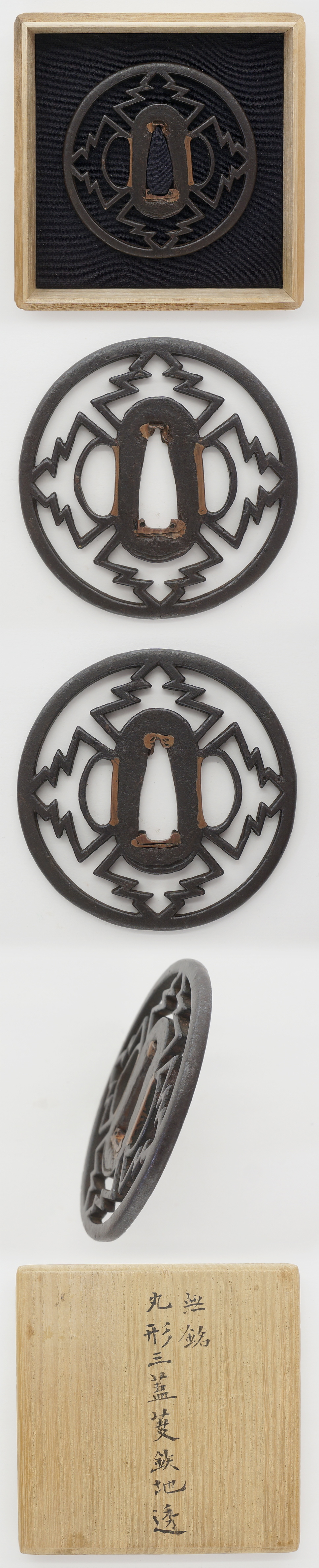 Special feature: Round shape iron Tsuba, four Sangaibishi designs are engraved with open work.