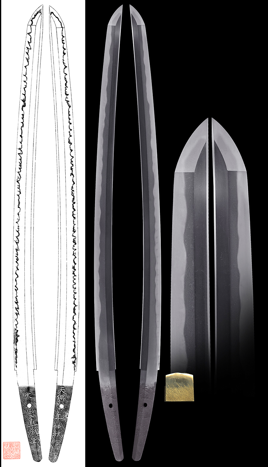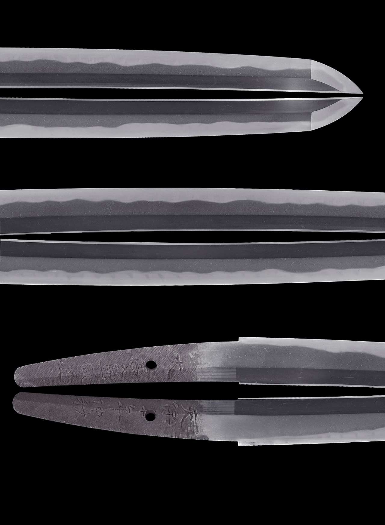 This blade is the work which has been practiced restoration method proposed by Suishinshi Masahide. Especially, this blade made like Osafune Kagemitsu. This blade represents well the height of the workmanship. blade length about 45.8cm early in February 2008 by Mr. Tanobe.