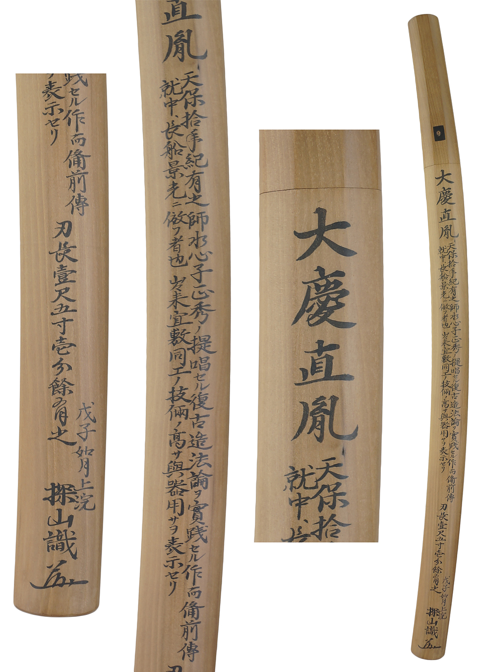 Sayagaki: Taikei Naotane Tenpo10 shuki ari kore Suishinshi Masahide no Teisho seru