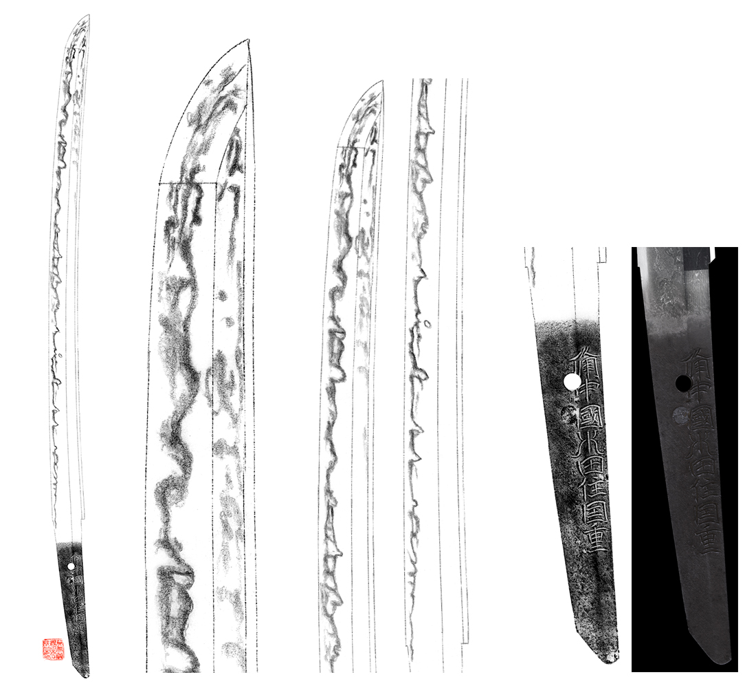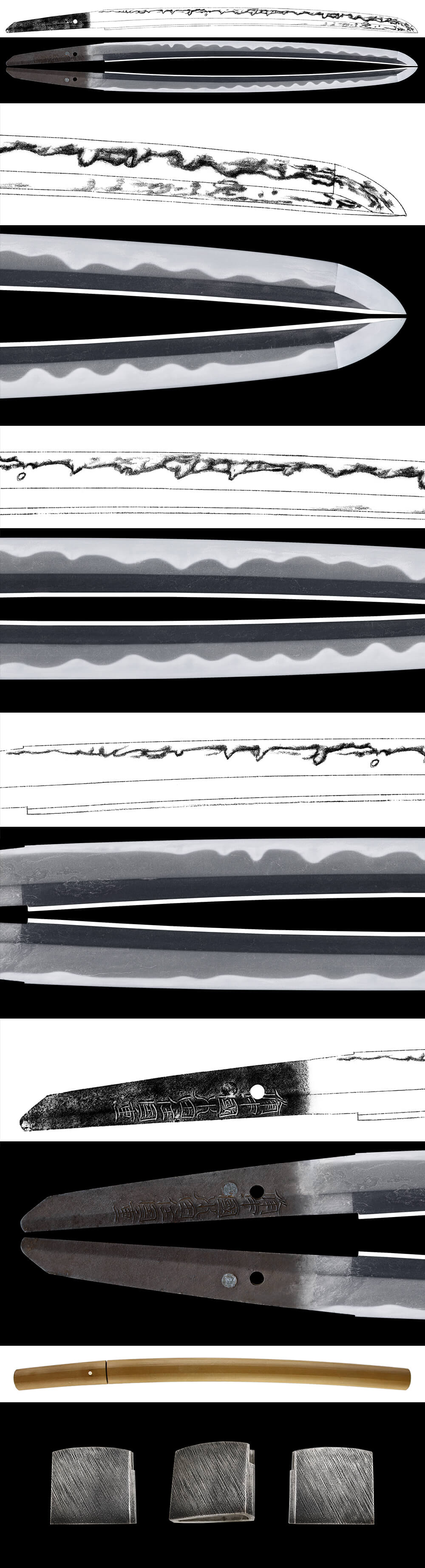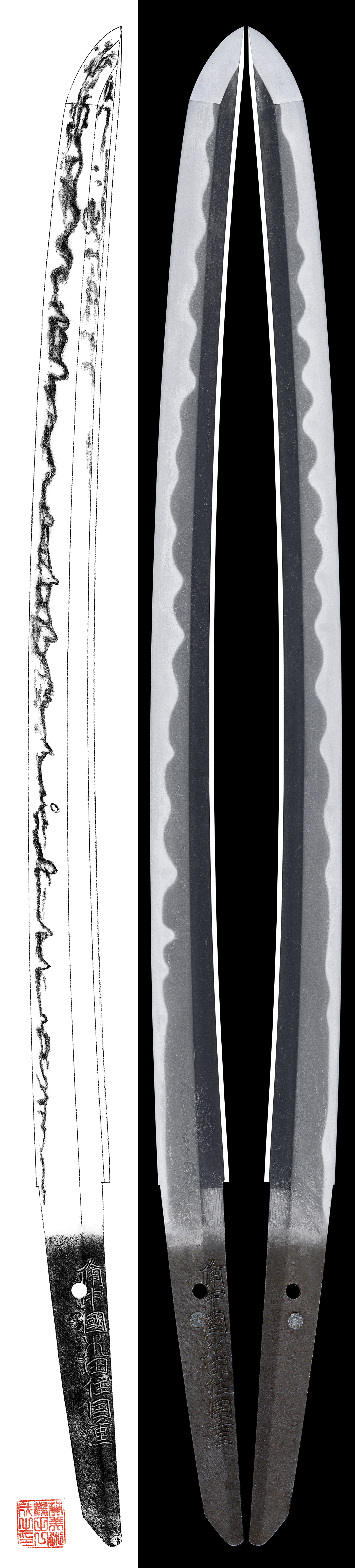 Shape : The blade is wide and thick with small sori and longer kissaki nice looking shape.