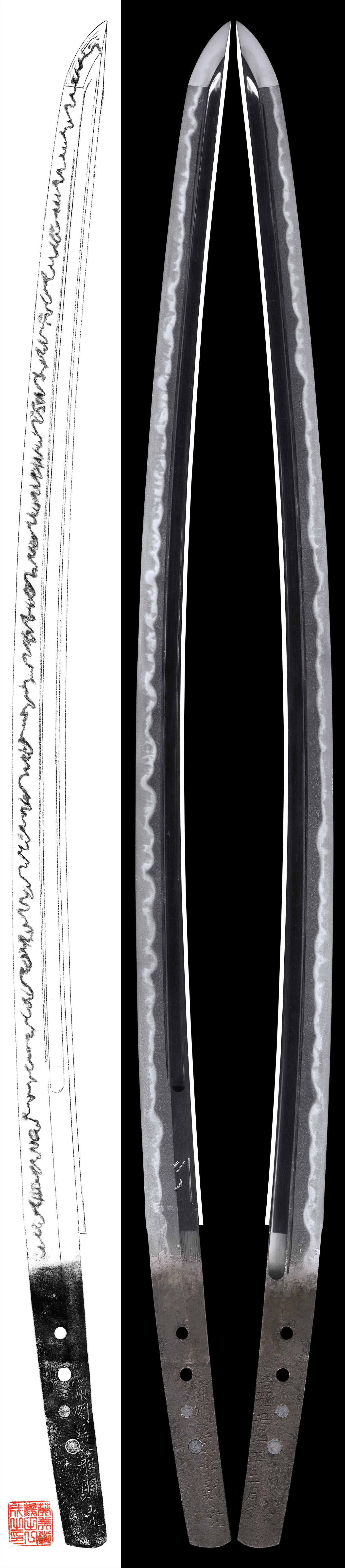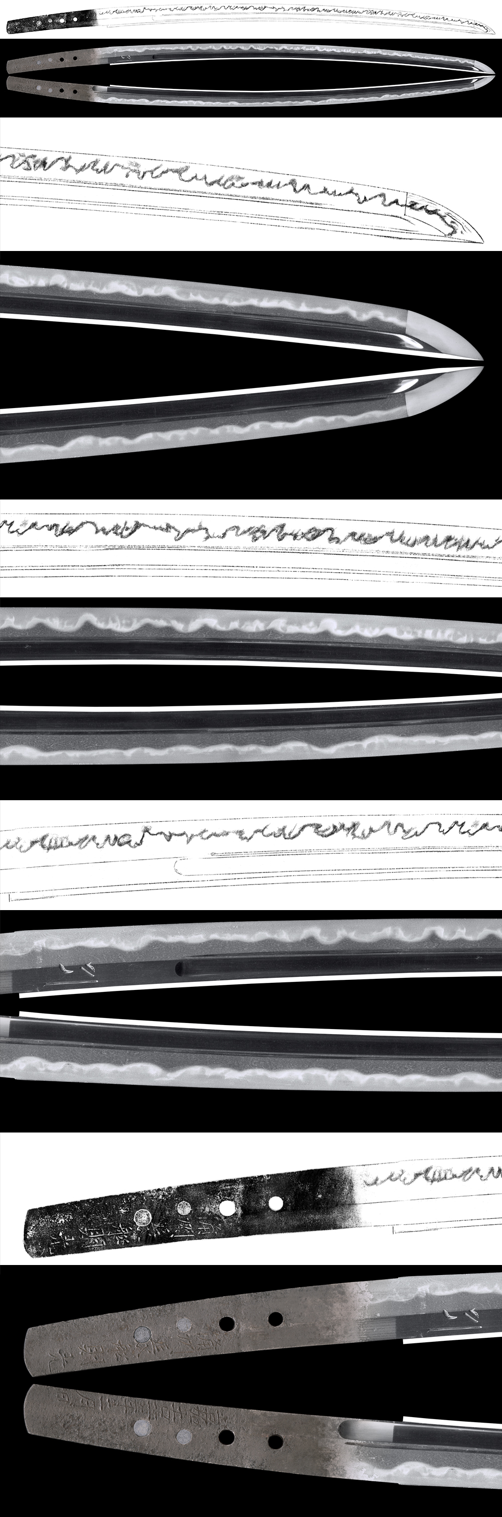 Hamon : Ko-Nie Deki, Choji Midare. There are many Ko-Ashi and Yo.