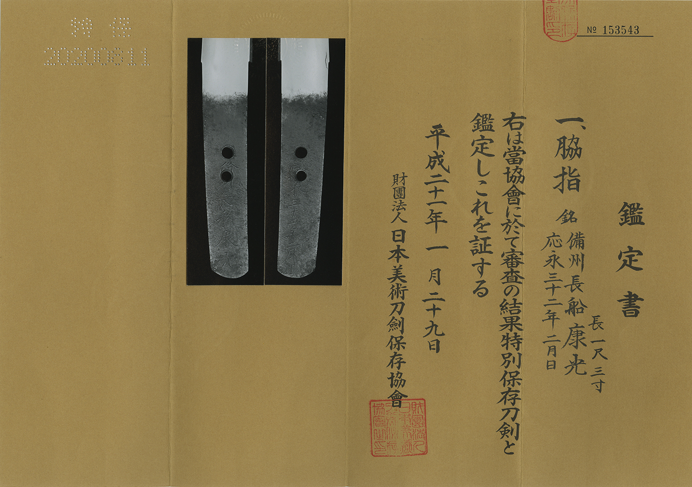 Signature : Bishu Osafune Yasumitsu