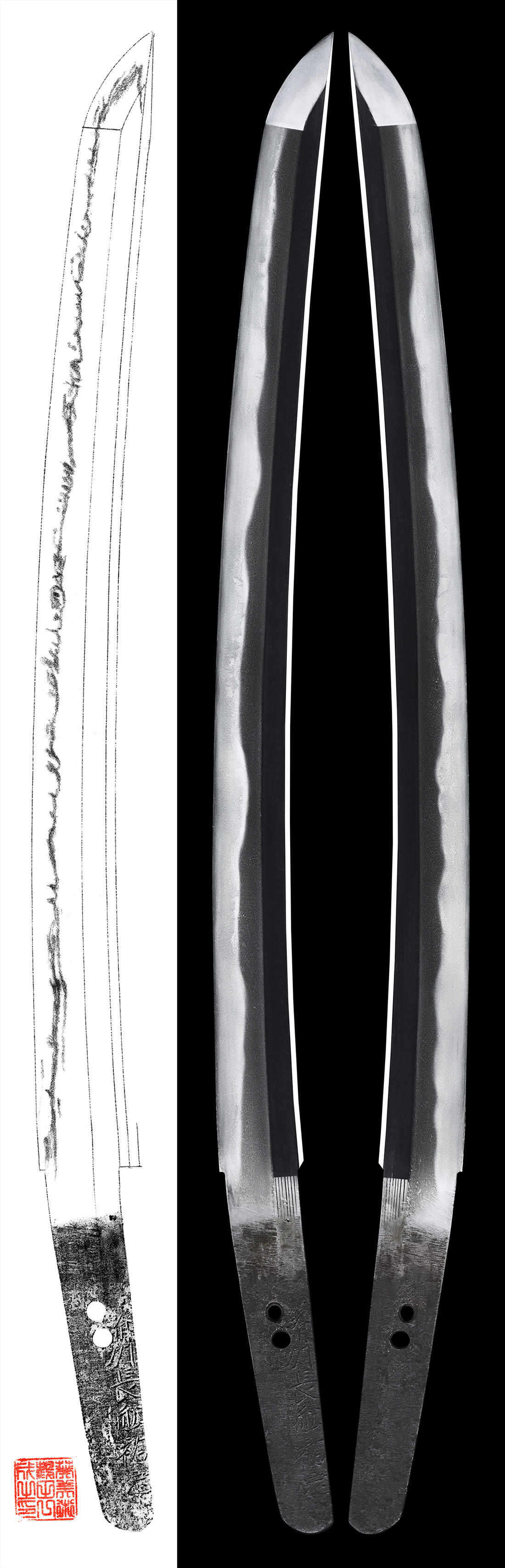 Hamon : Niedeki Cyoji midair and small Cyoji midair mixed.