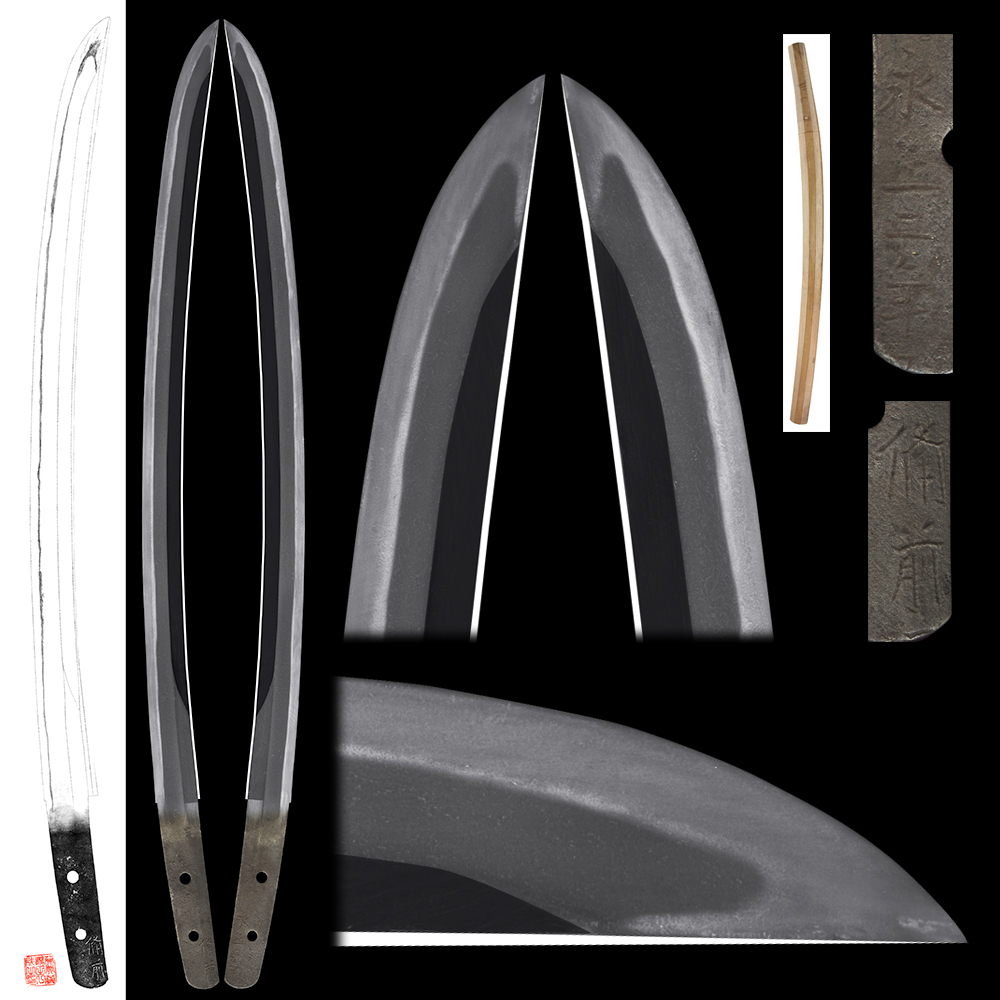 Special feature : This blade seems to be forged by Sue-Mihara school or by Takada school around late Muromachi period.