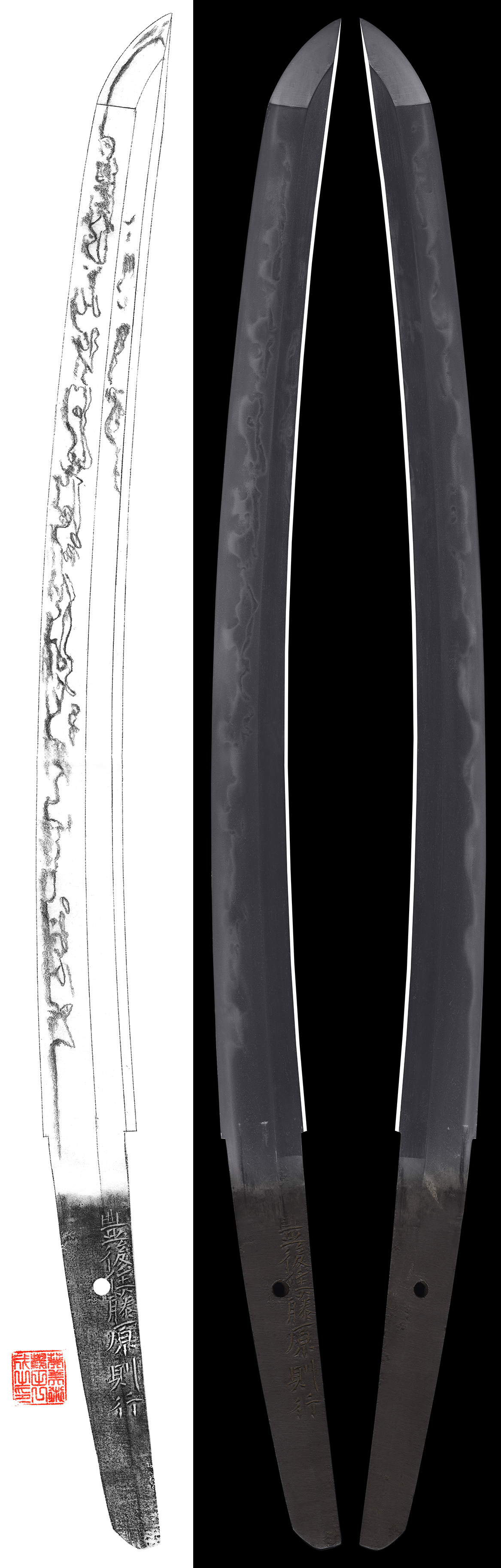 Hamon : Nie base with deep nioiguchi. It is hitatsura style.